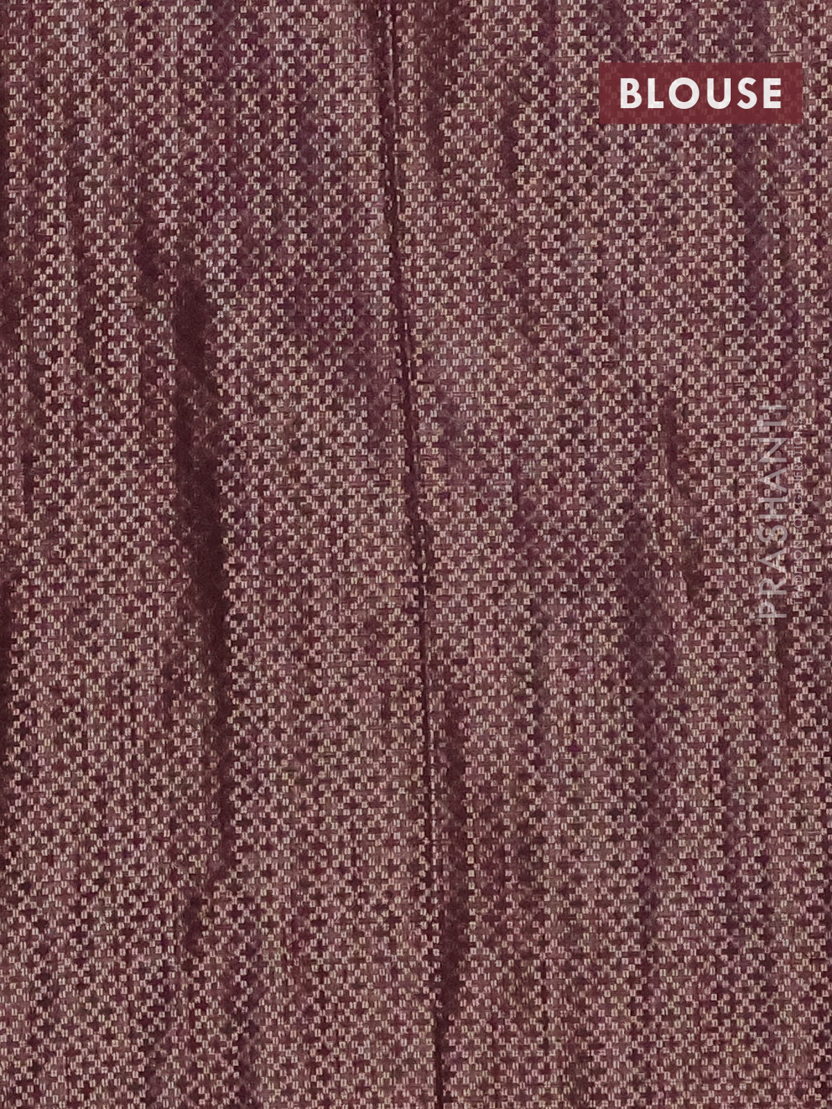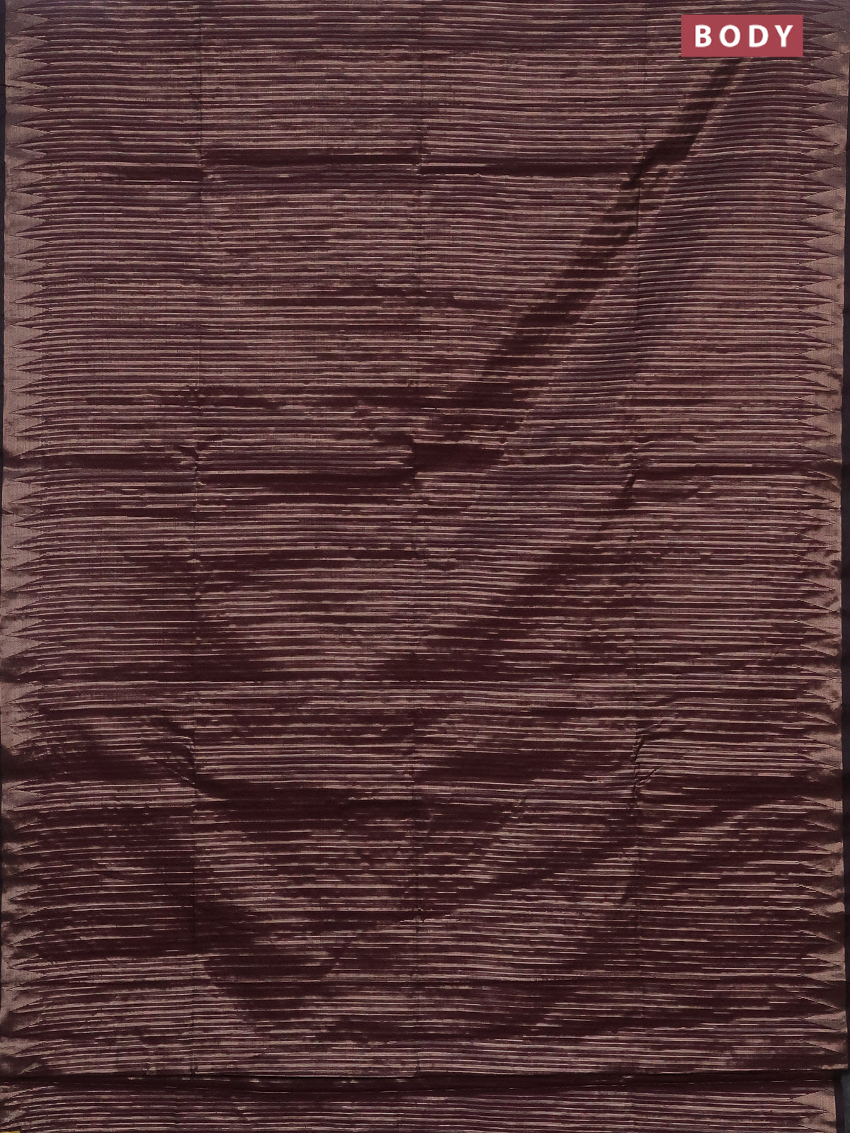 Banarasi matka tissue saree wine shade with allover zari weaves and temple deisgn zari woven border
