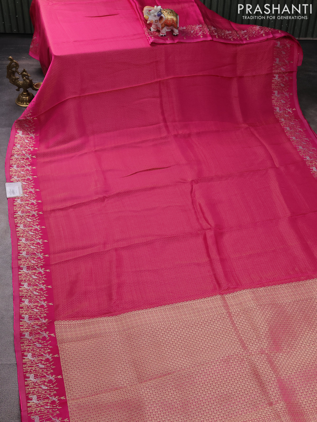 Banarasi mushru silk saree pink with allover zari weaves and zari woven border