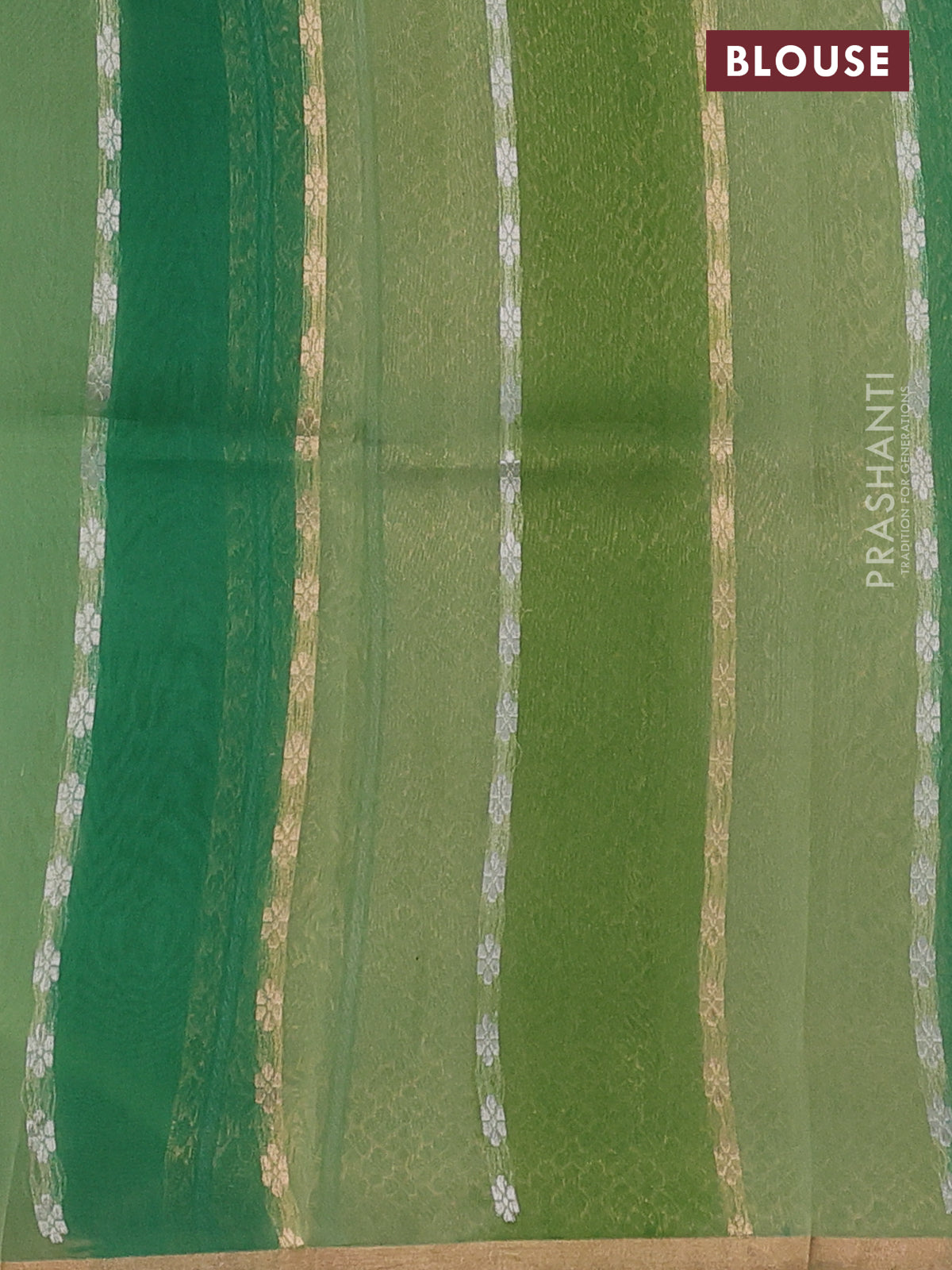 Banarasi organza silk saree green shade with allover silver & gold zari weaves and zari woven piping boder