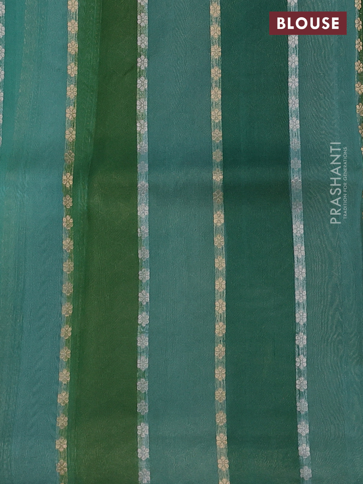 Banarasi organza silk saree teal green with rangakt weaves and zari woven piping boder