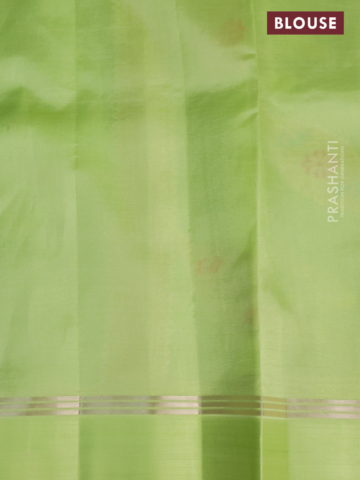 Banarasi poona silk saree green and light green with thread & zari woven geometric buttas and zari woven simple border