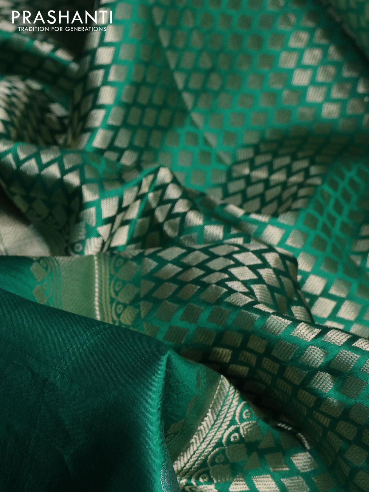 Banarasi poona silk saree green and violet with zari woven floral buttas and zari woven border