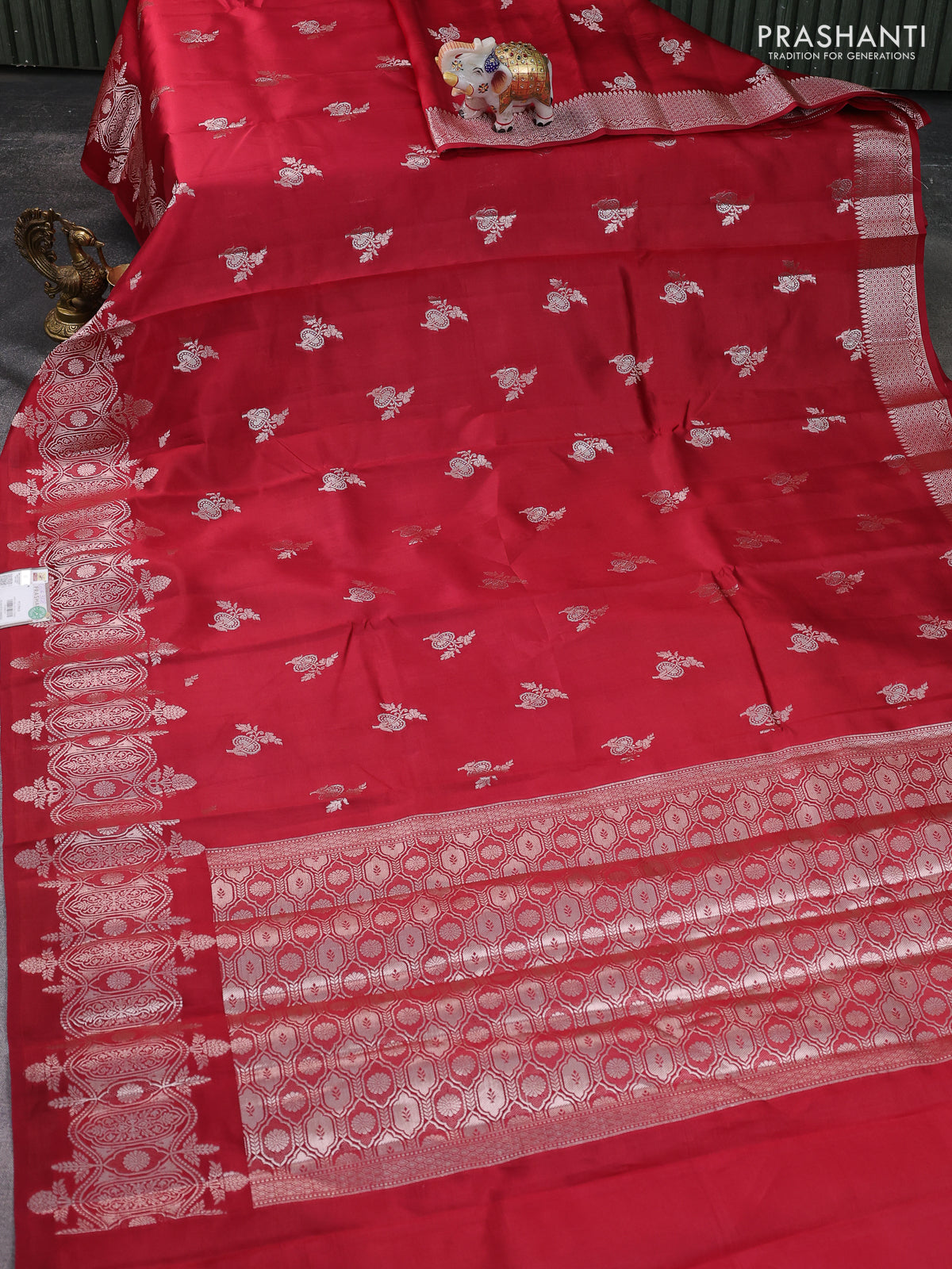 Banarasi poona silk saree red with zari woven buttas and zari woven border