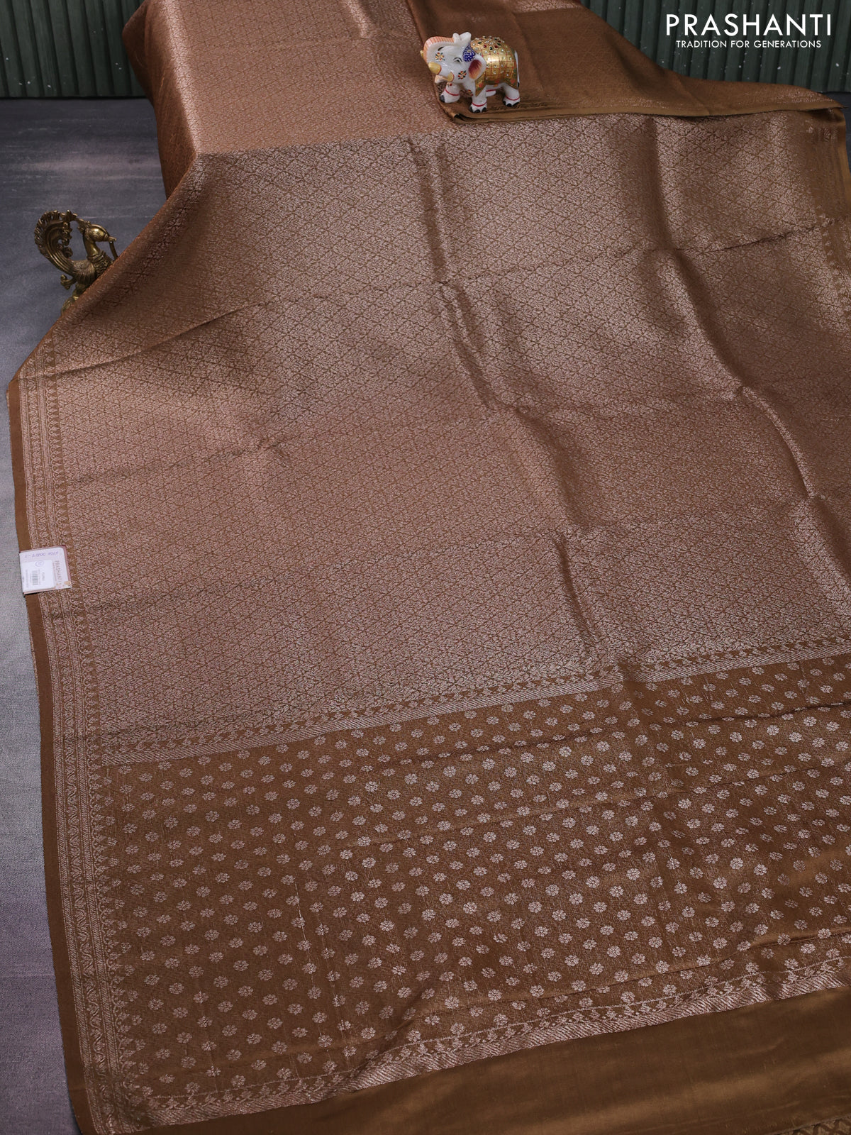 Banarasi semi crepe saree dark mehendi green with allover thread & zari woven brocade weaves and woven border