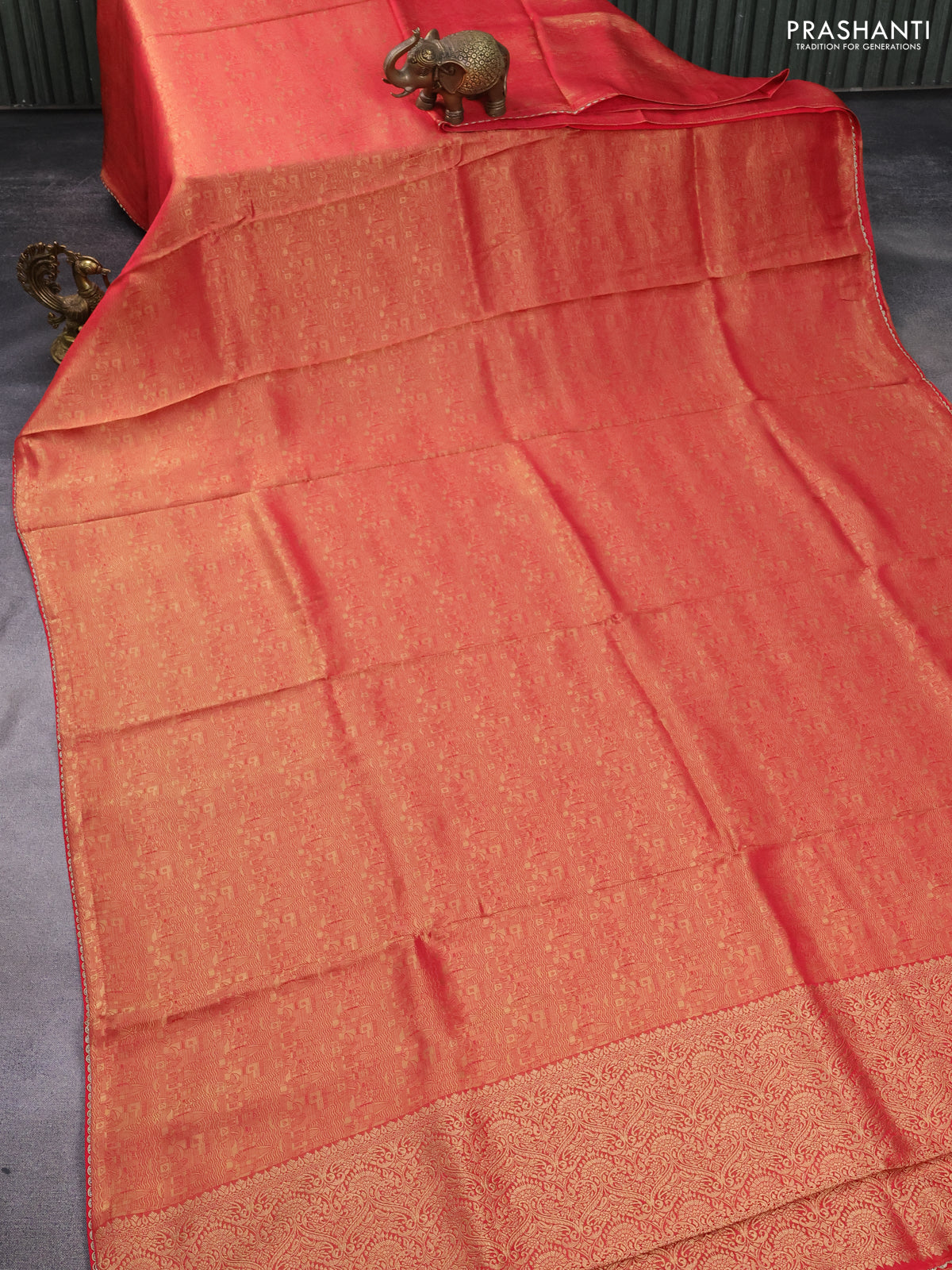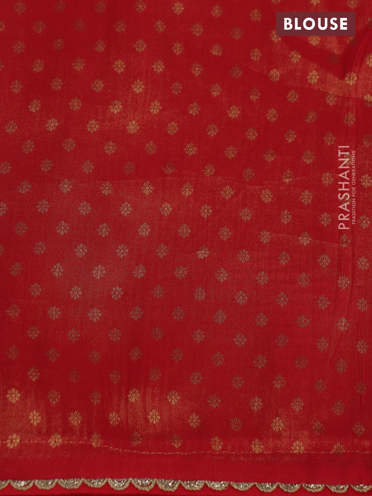 Banarasi semi crepe saree red with allover zari woven brocade weaves and lace work border