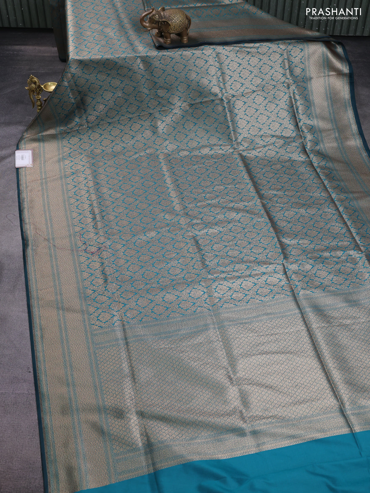 Banarasi semi katan saree teal green with allover thread & zari woven brocade pattern and woven border