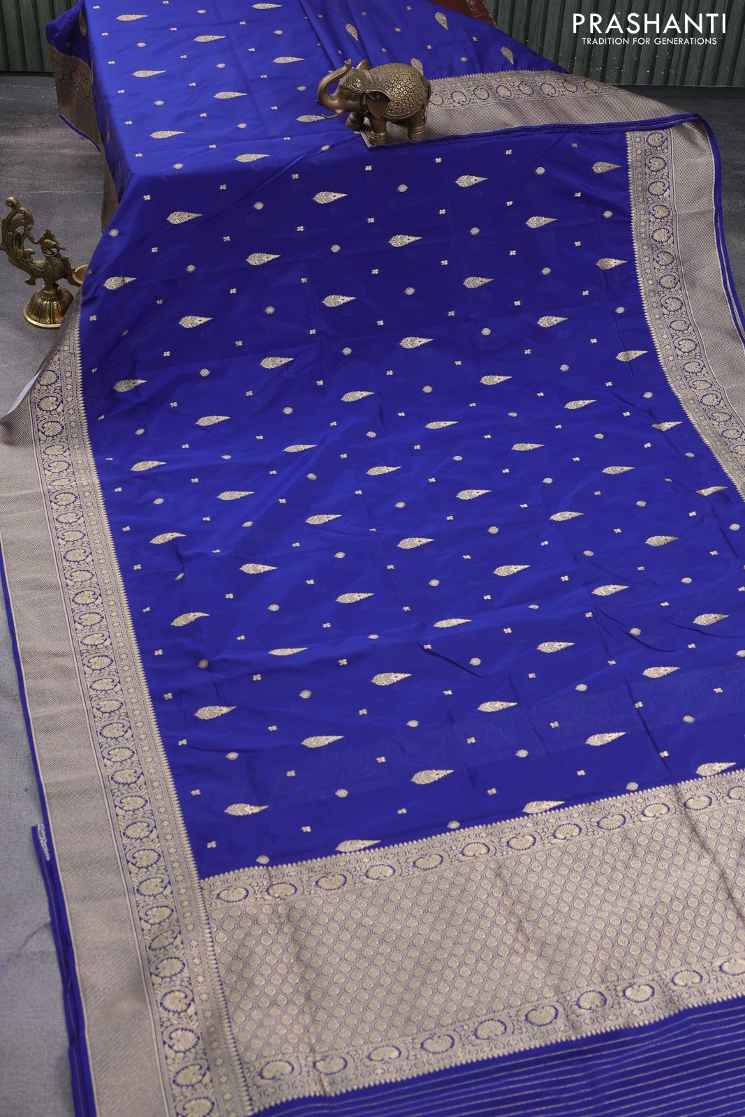 Banarasi semi katan silk saree blue with zari woven buttas and rich zari woven border