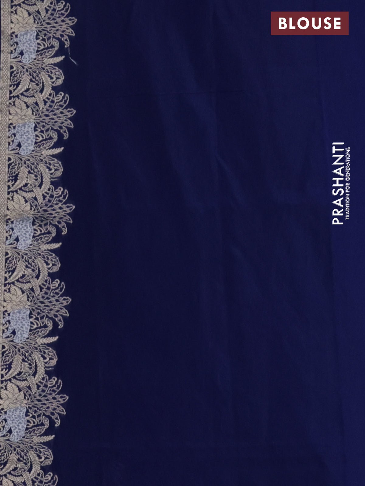 Banarasi semi katan silk saree dark blue with allover silver & gold zari weaves and zari woven border