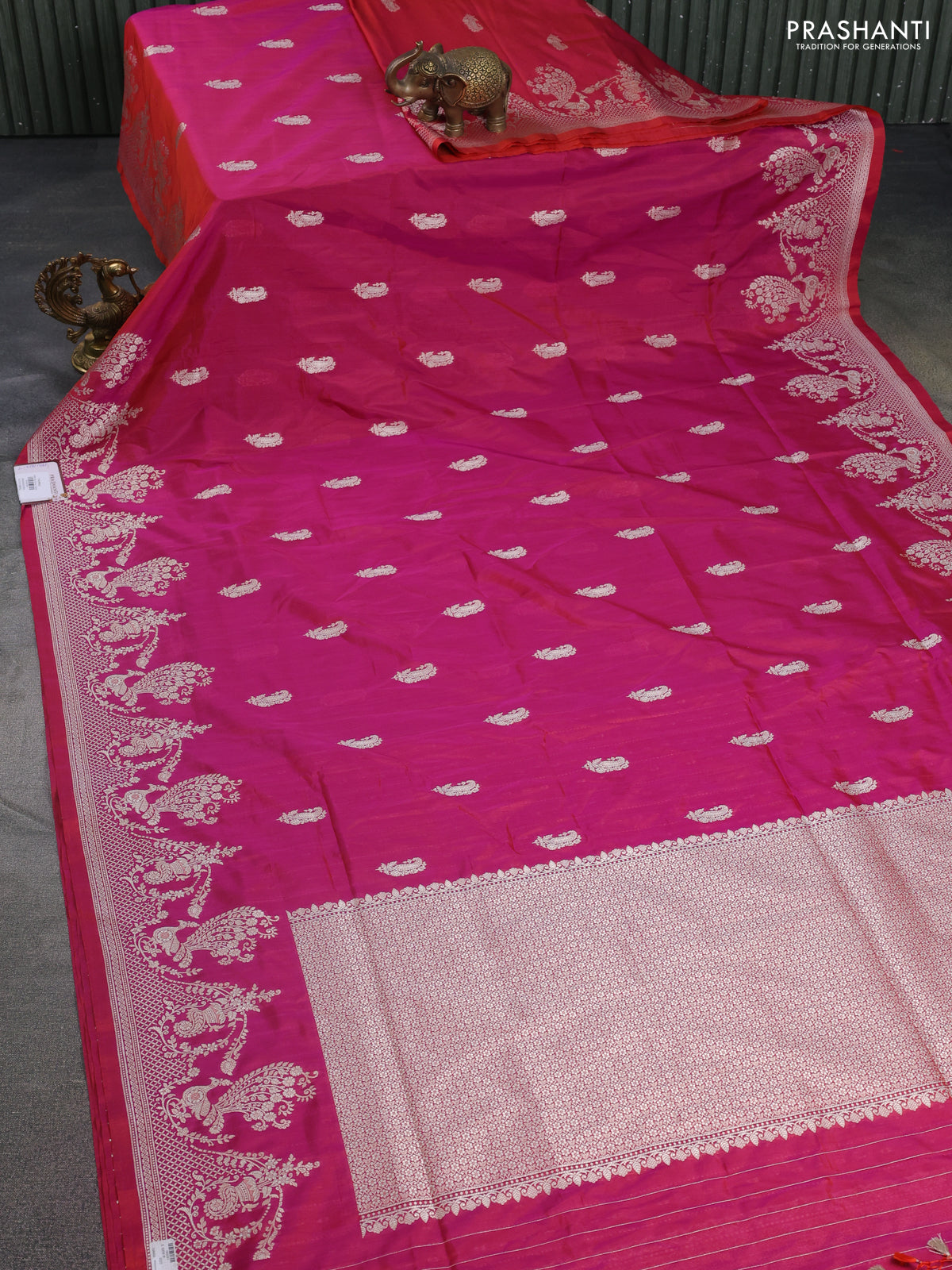Banarasi semi katan silk saree dual shade of pink with zari woven buttas and rich zari woven border