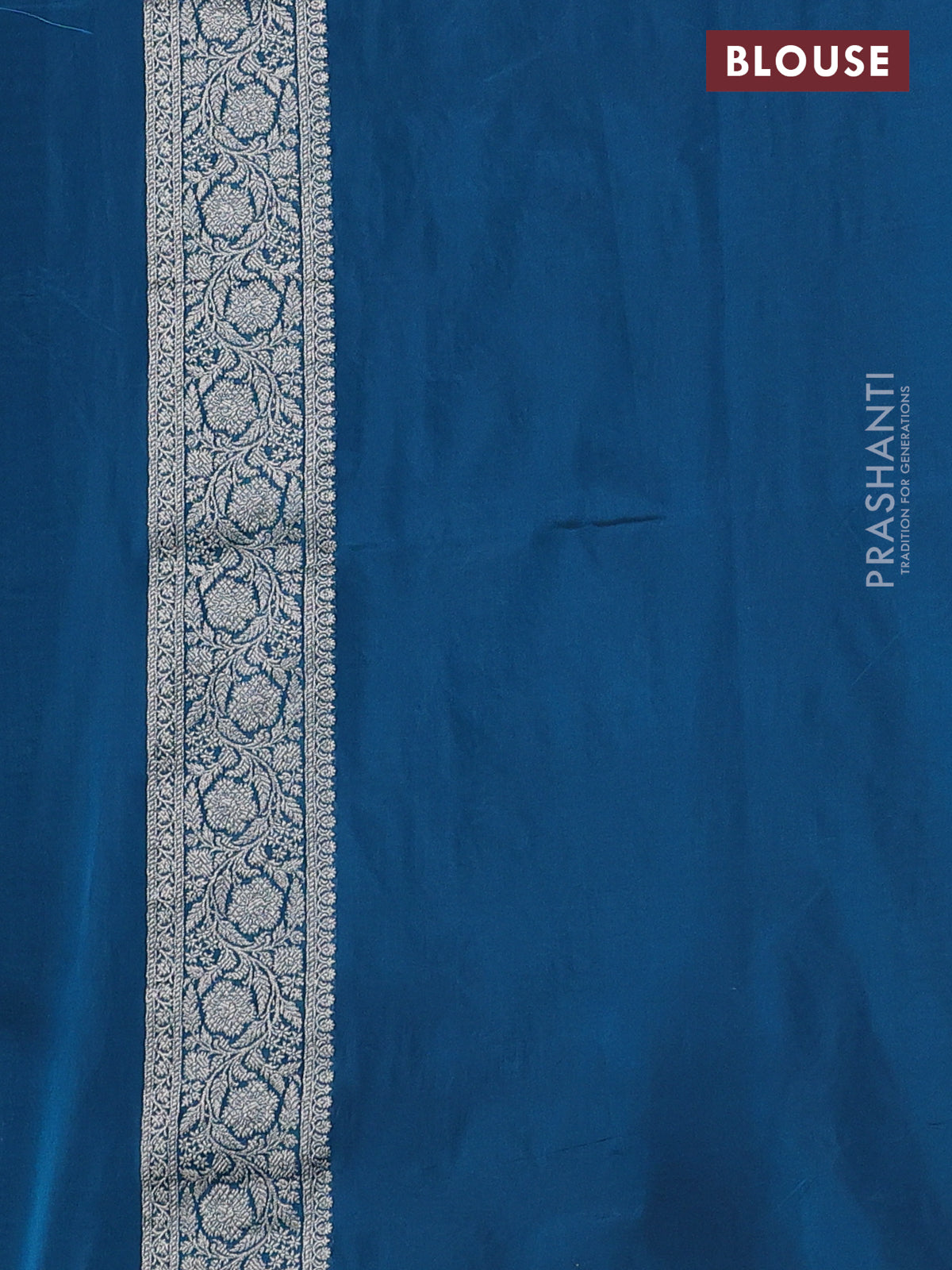 Banarasi semi katan silk saree peacock blue with allover silver & gold zari weaves and floral zari woven border