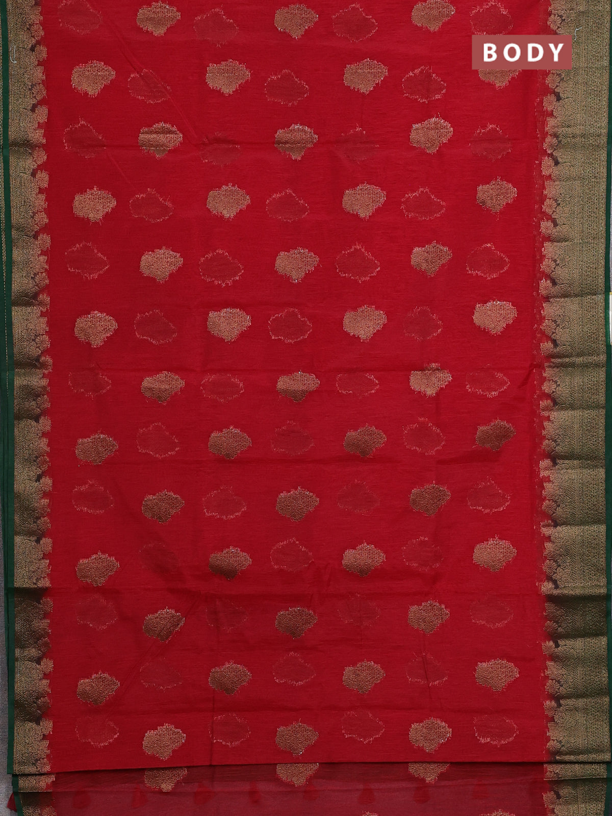 Banarasi semi matka saree red and green with thread & zari woven floral buttas and banarastyle border