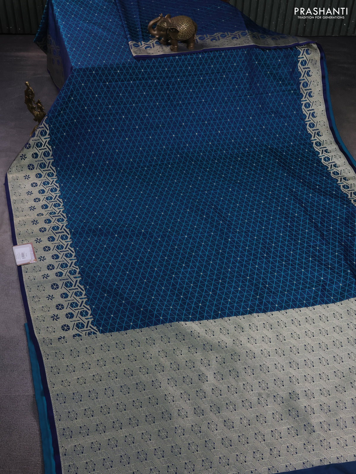 Banarasi semi mushru silk saree dual shade of blue with allover self emboss & zari buttas and zari woven border