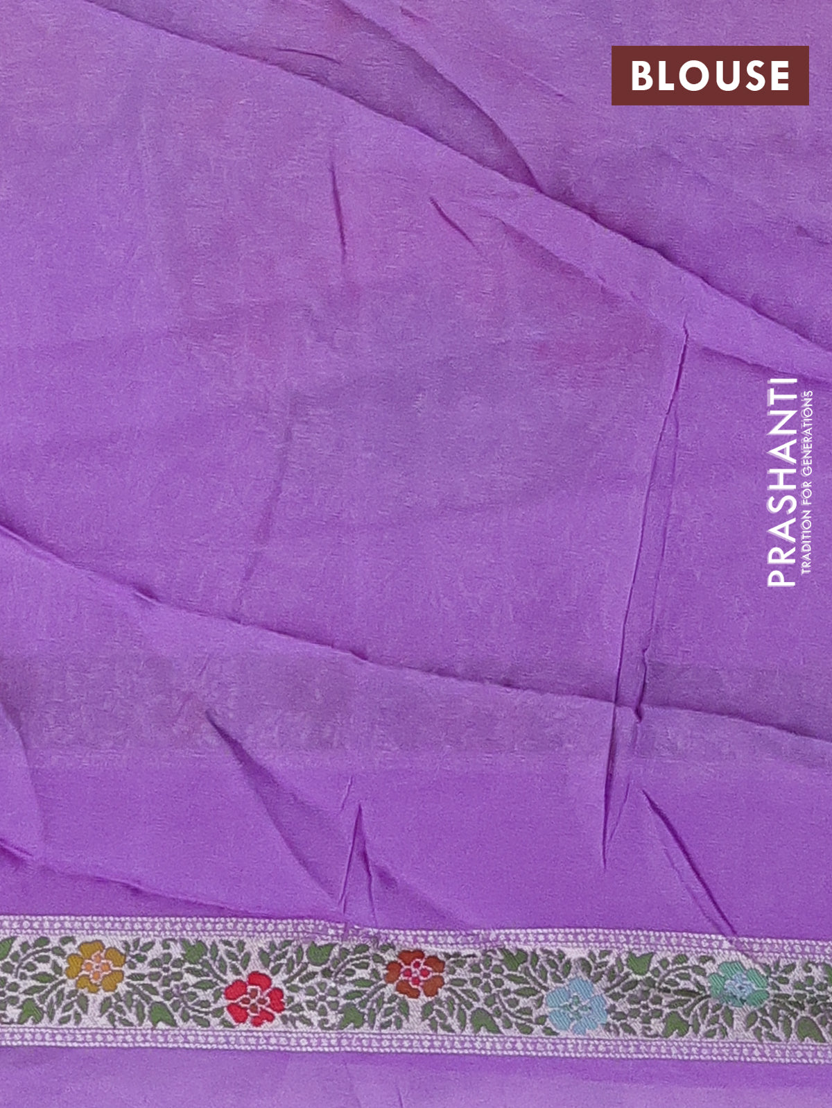 Banarasi semi raw silk saree lavender with allover silver zari woven paithani weaves and woven border