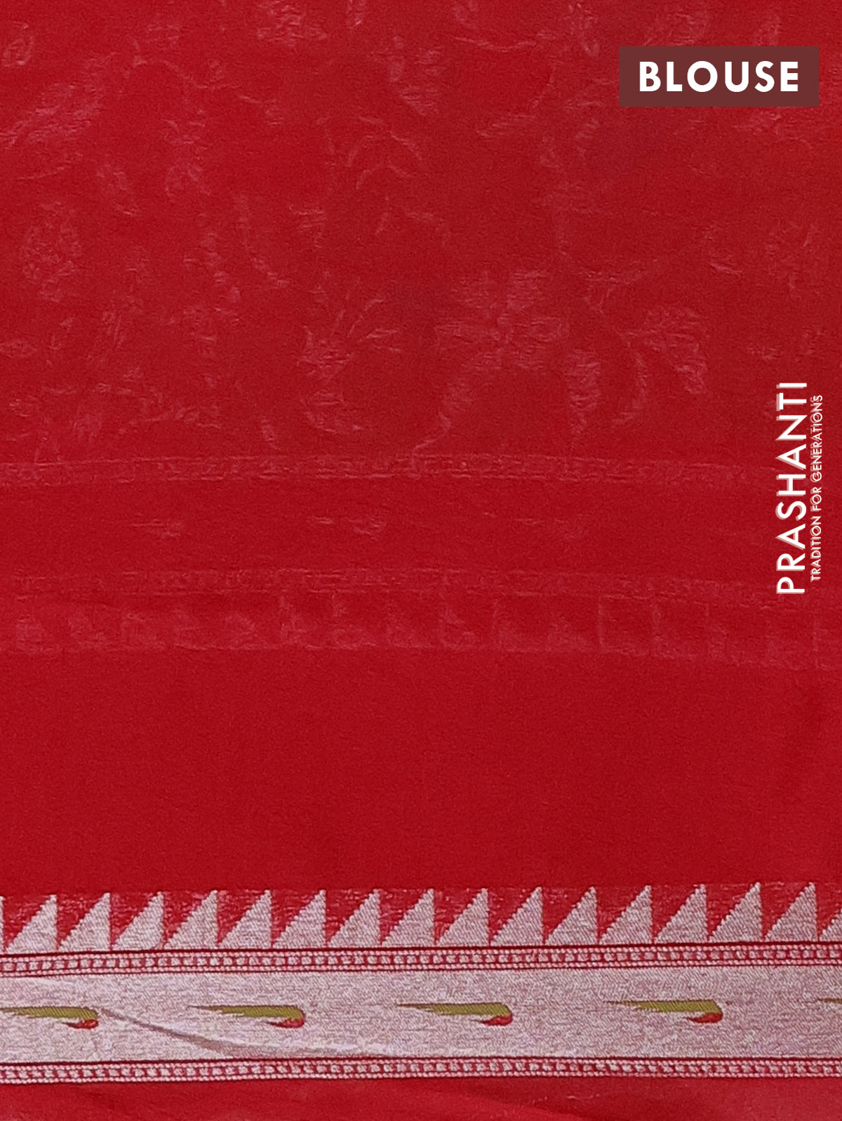 Banarasi semi raw silk saree red with allover silver woven brocade weaves and floral design paithani border