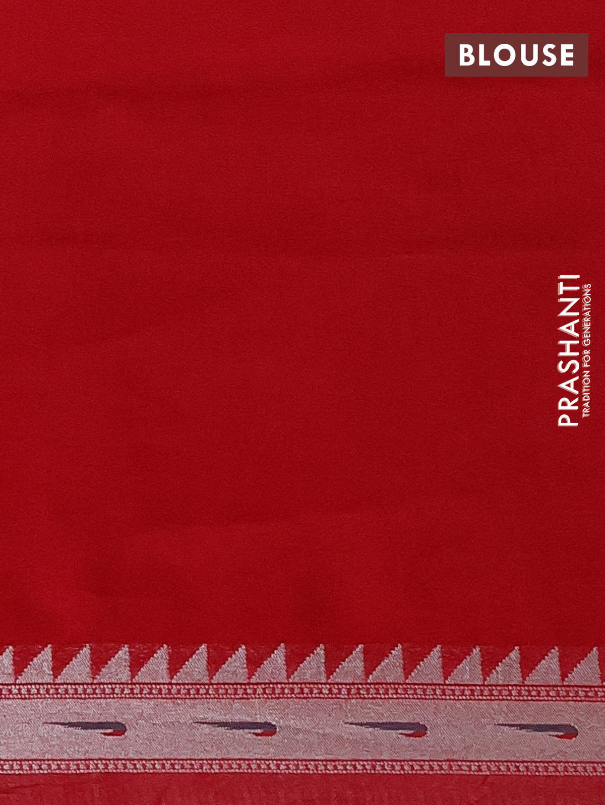 Banarasi semi raw silk saree red with allover zari woven brocade weaves and floral design paithani border