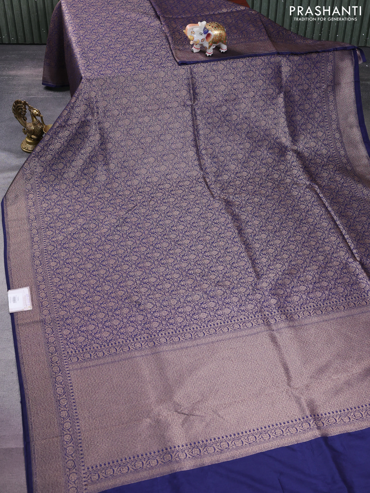 Banarasi semi silk saree navy blue with allover thread & zari weaves and woven border