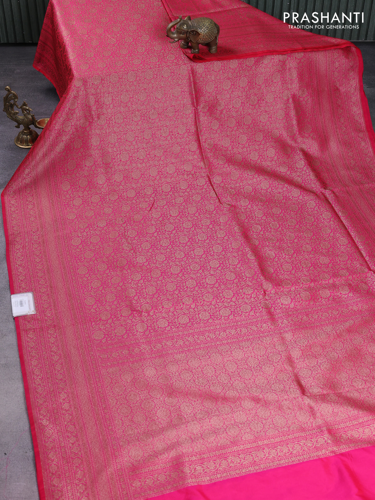 Banarasi semi silk saree pink with allover thread & zari weaves and woven border