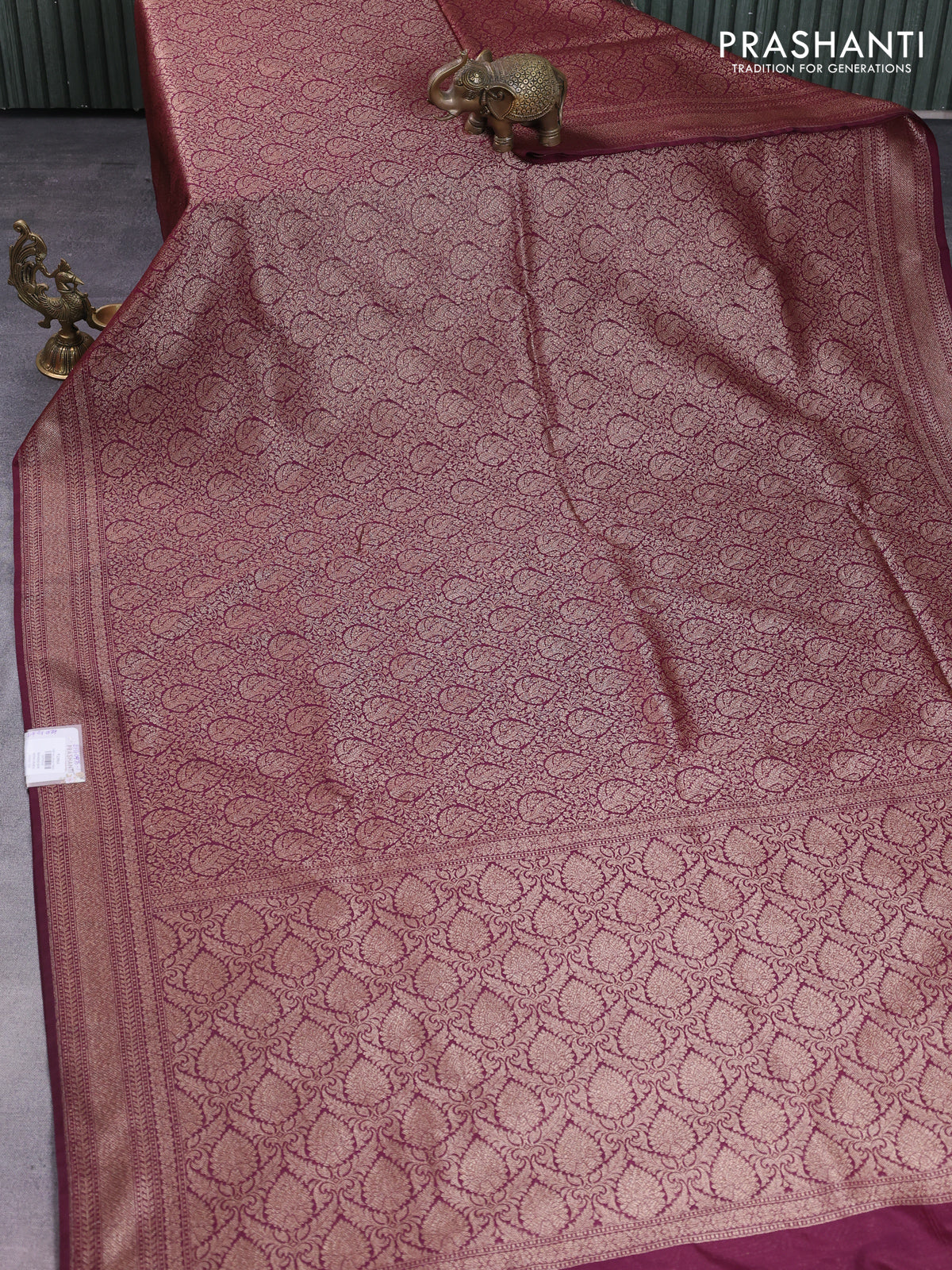 Banarasi semi silk saree wine shade with allover thread & zari weaves and woven border