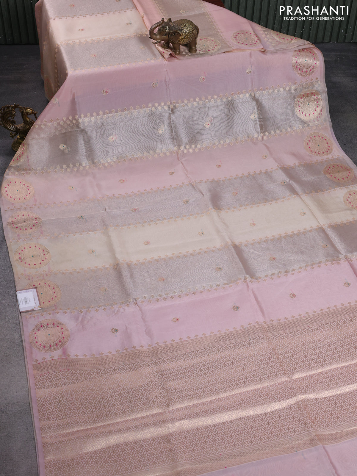 Banarasi tissue semi silk saree beige and peach pink with zari weaves & buttas and zari woven butta border