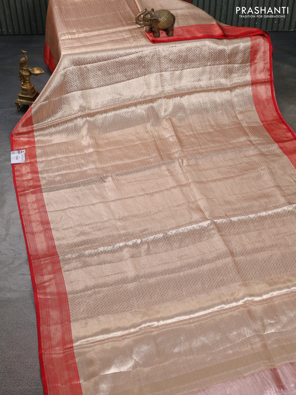Banarasi tissue silk saree gold and red with allover zari woven brocade weaves and zari woven border