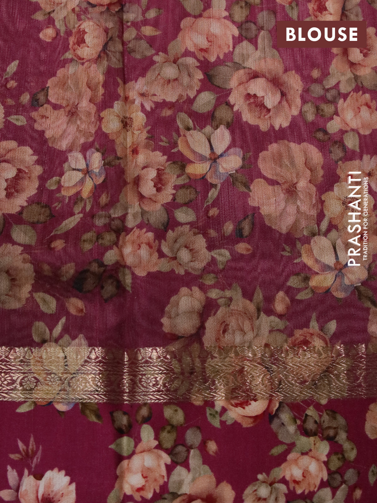 Banarasi tussar silk saree maroon and magenta pink with zari woven buttas and zari woven floral digital printed border