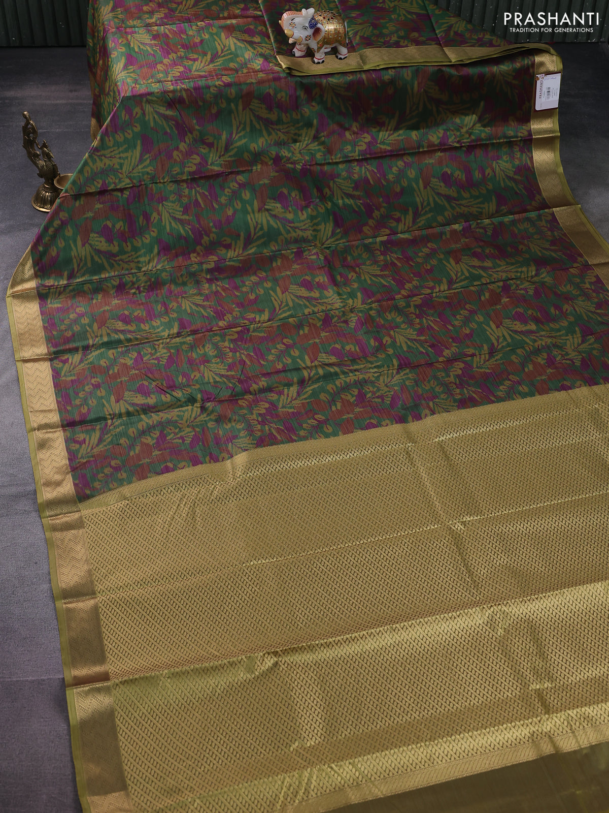Bangalori semi silk saree green and lime green with allover ikat weaves and zari woven border
