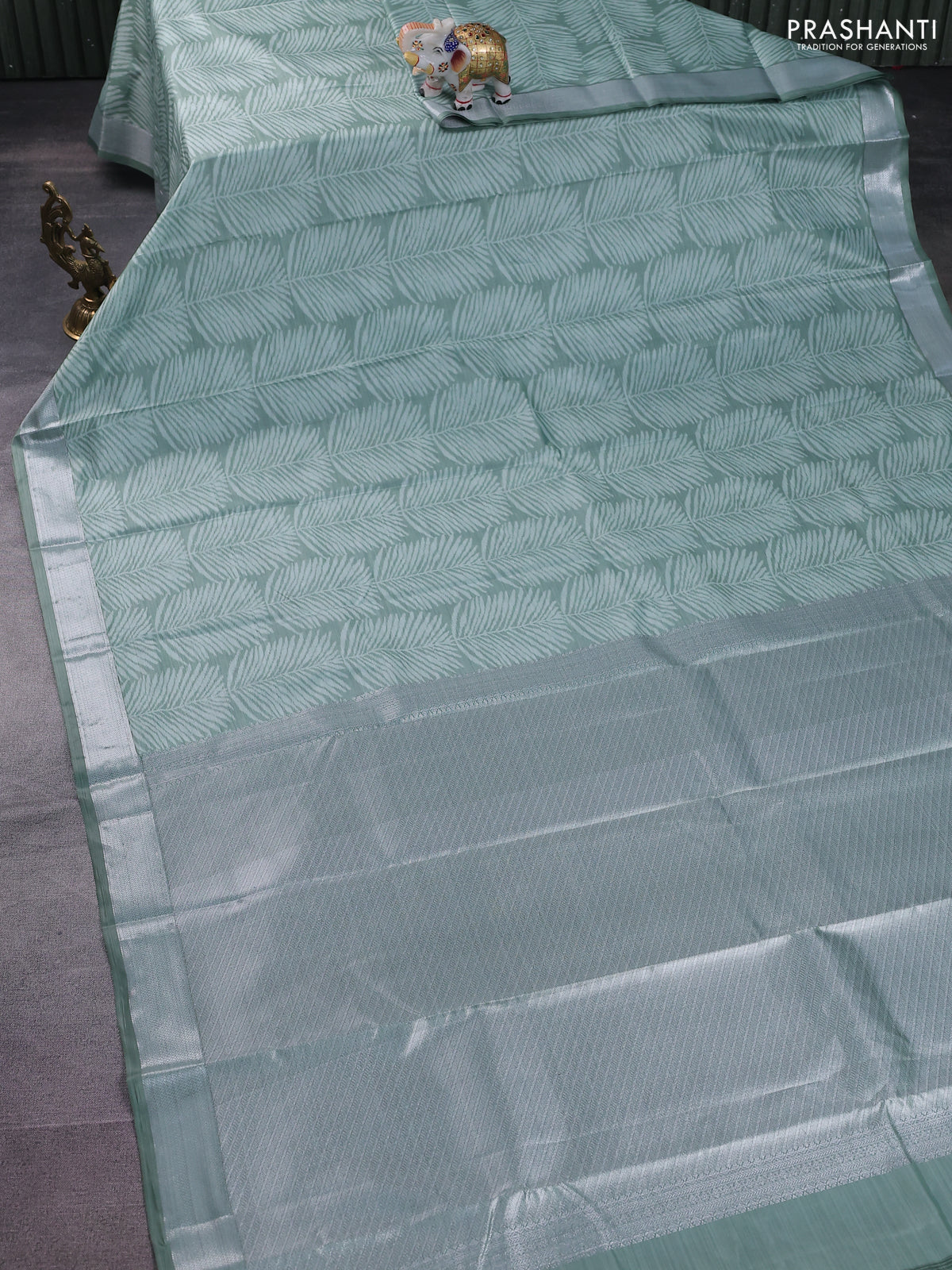 Bangalori semi silk saree pastel green with allover ikat weaves and zari woven border