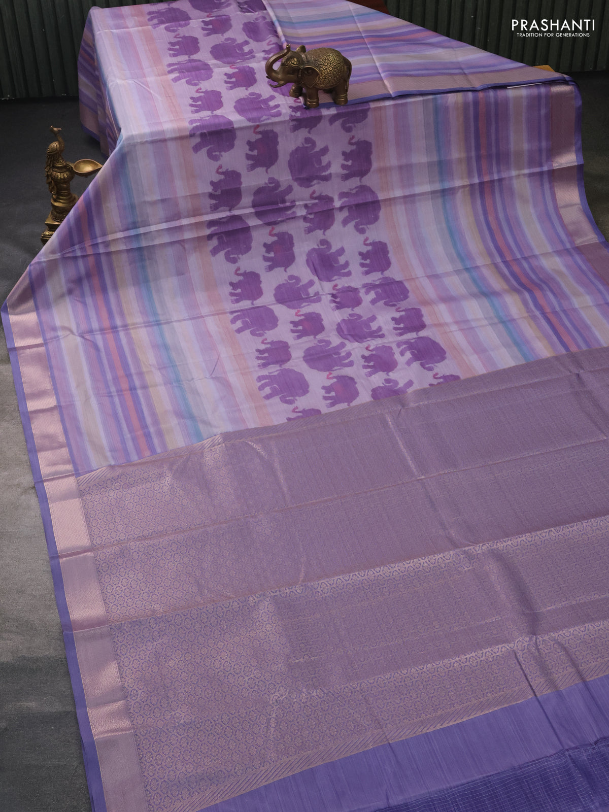 Bangalori semi silk saree pastel lavender with elephant butta ikat weaves and zari woven border