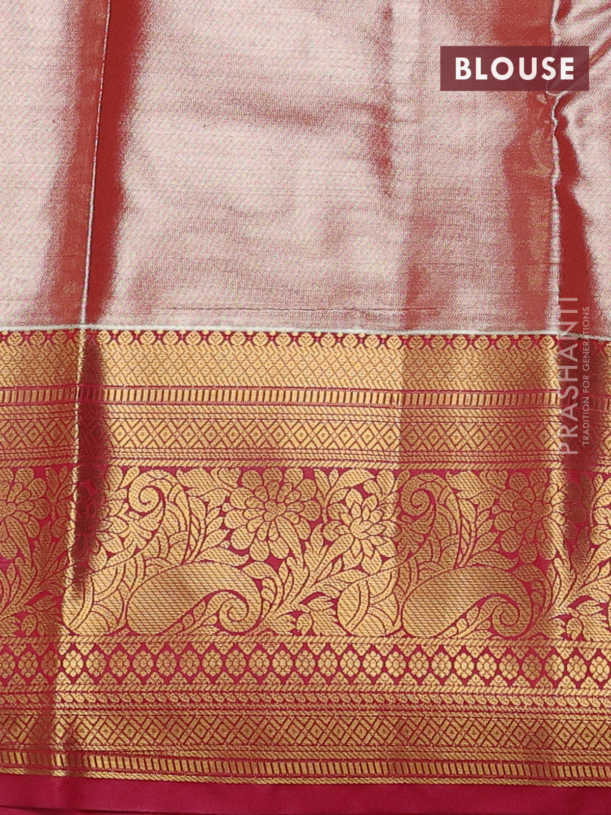 Bangalori tissue silk saree teal blue and reddish pink with allover zari woven brocade weaves and long zari woven border