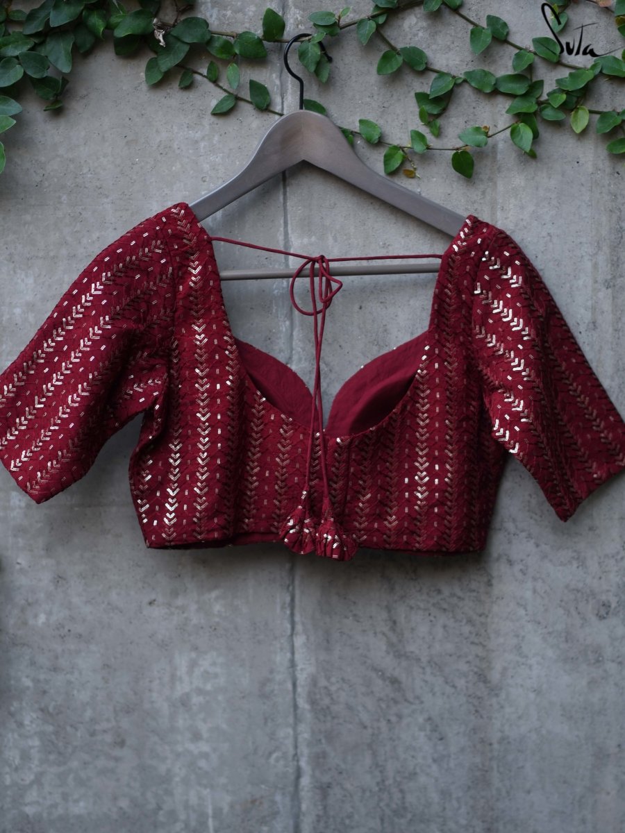 This is a gorgeous viscose blouse in maroon with a sweetheart neckline and is a perfect mix of sass and comfort!