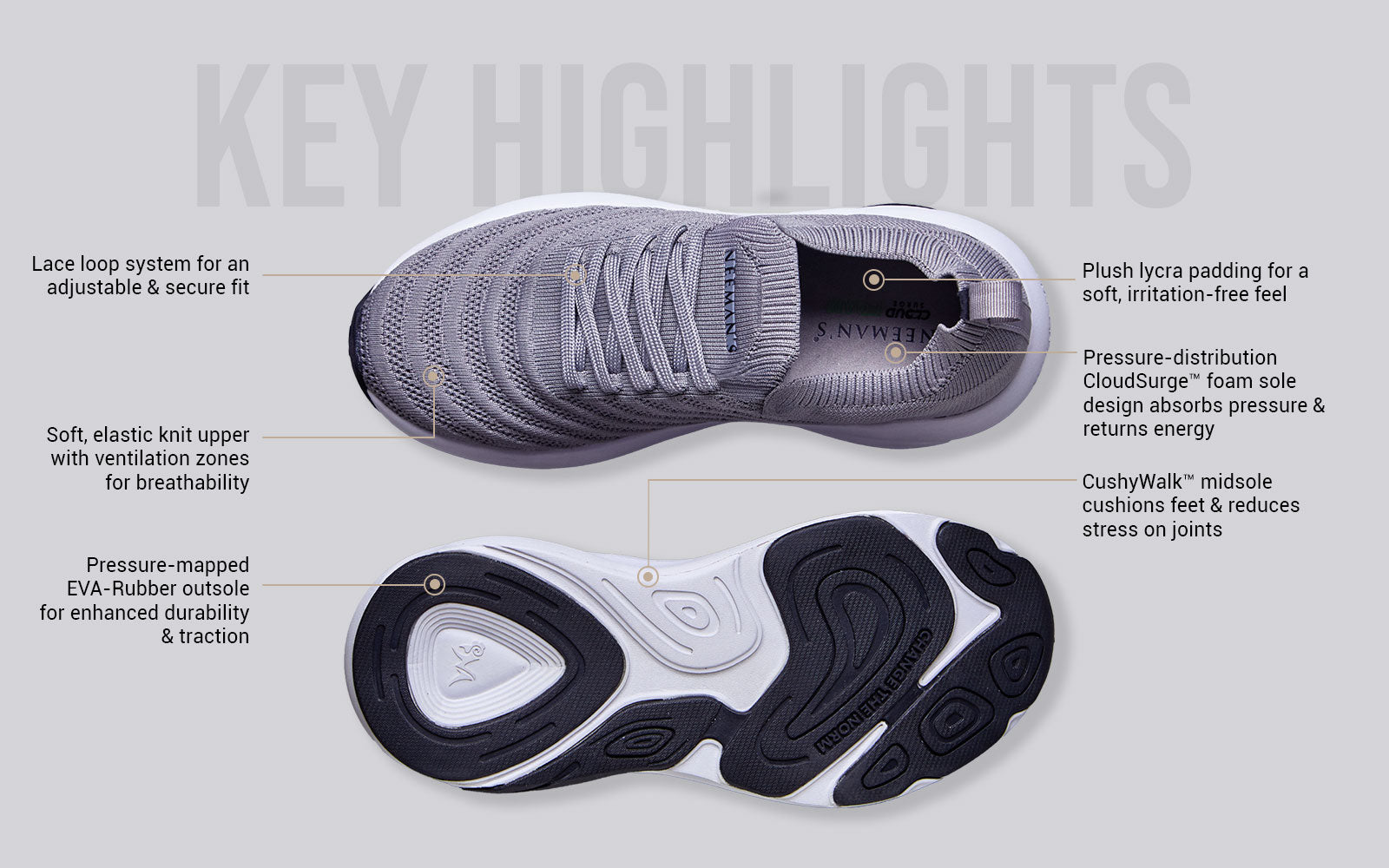 Don’t just walk - CushyWalk™. The Begin Walk Glide sneakers are built for that - Stress-free movement, enhanced airflow and delightful cushioning. With a stretchy knit upper that adapts to your foot, ventilation zones that let it breathe, and CushyWalk™ sole technology that makes every step feel soft and supportive, this pair is all glide and zero grind.