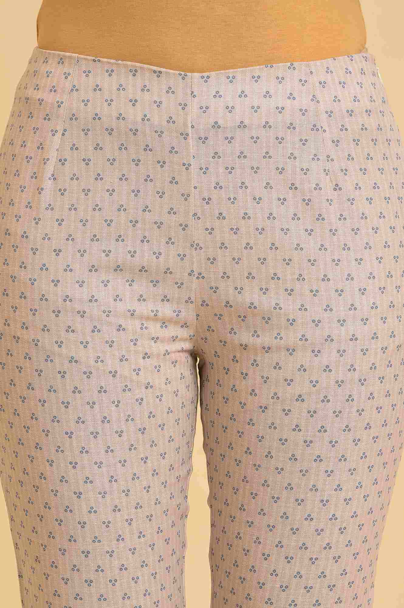Breezy and feminine, this beige flared kurta and slim pant set is crafted from pure cotton for breathable comfort. Floral prints add a touch of nature-inspired elegance, while the flared cut brings graceful movement. The slim pants balance the ensemble for a polished finish. This kurta set for women is ideal for summer celebrations, casual meet-ups, or day-long wear.