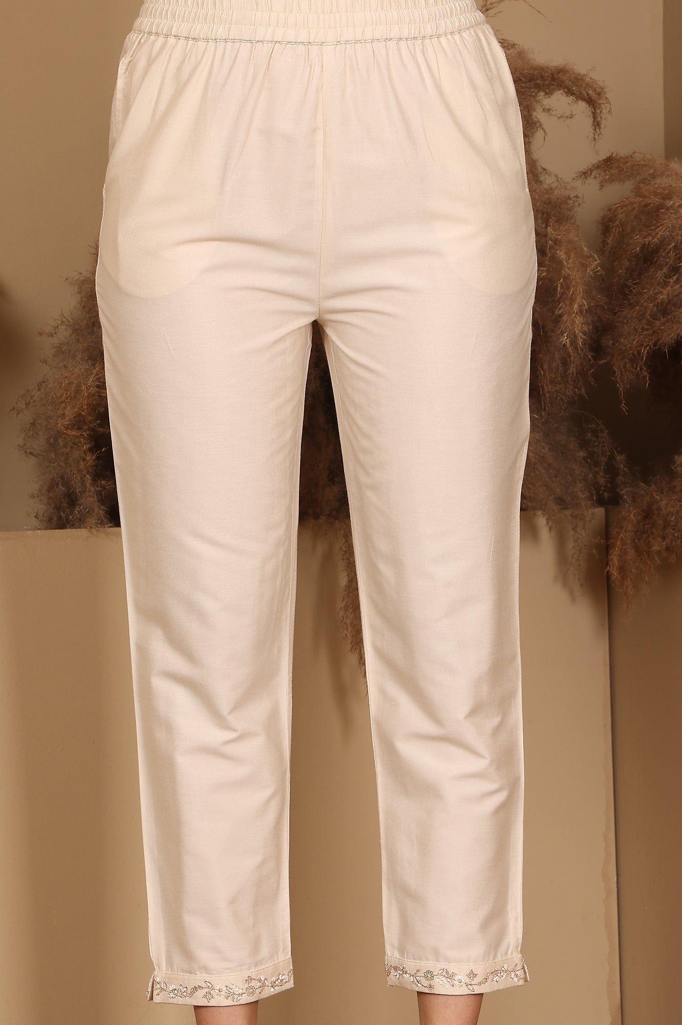 The beige sleeveless straight kurta set in jacquard is a sophisticated choice for festive occasions. The kurta features a luxurious jacquard fabric with a subtle sheen, elegantly complemented by sequins detailing around the neckline, adding a touch of sparkle. It is paired with embroidered straight pants that enhance the ensemble with intricate patterns and textures. Completing the look is a festive drape that adds a graceful and celebratory element, making this outfit perfect for special events and gatherings.