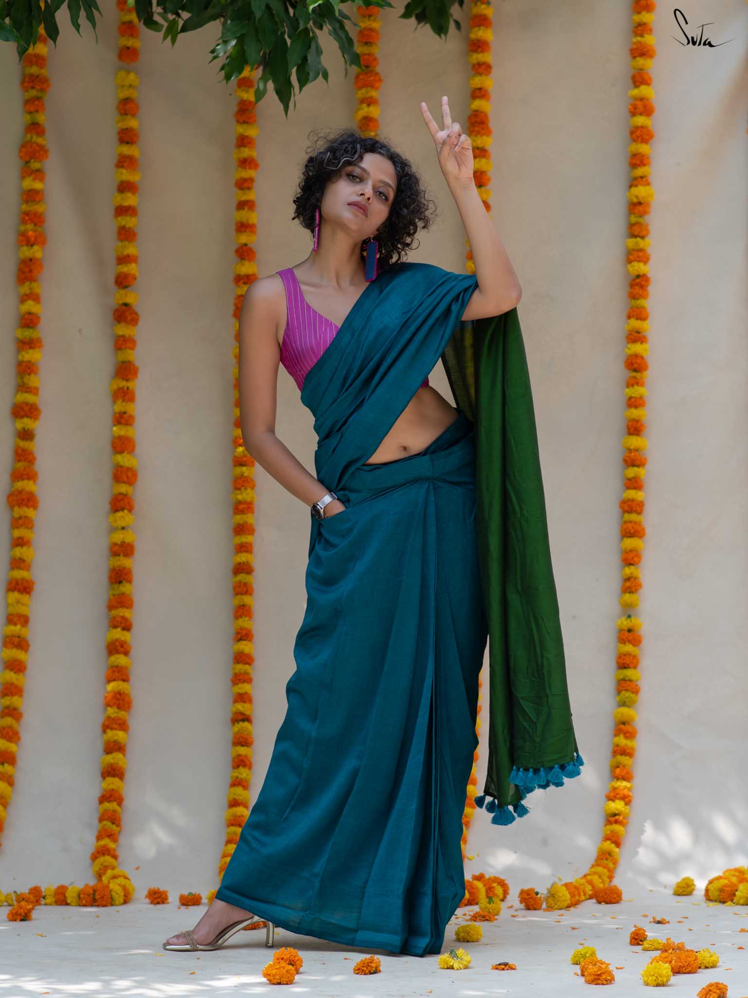 These ready-to-wear sarees feature attached underskirts and handy pockets. Simply slip it on and style it in three easy steps for a stunning look in just 30 seconds. Perfect for any occasion, these sarees combine traditional charm with modern functionality. Get ready to turn heads without the hassle.