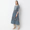 Below Knee Flare Fit Tiered Jaipuri Printed Kurta