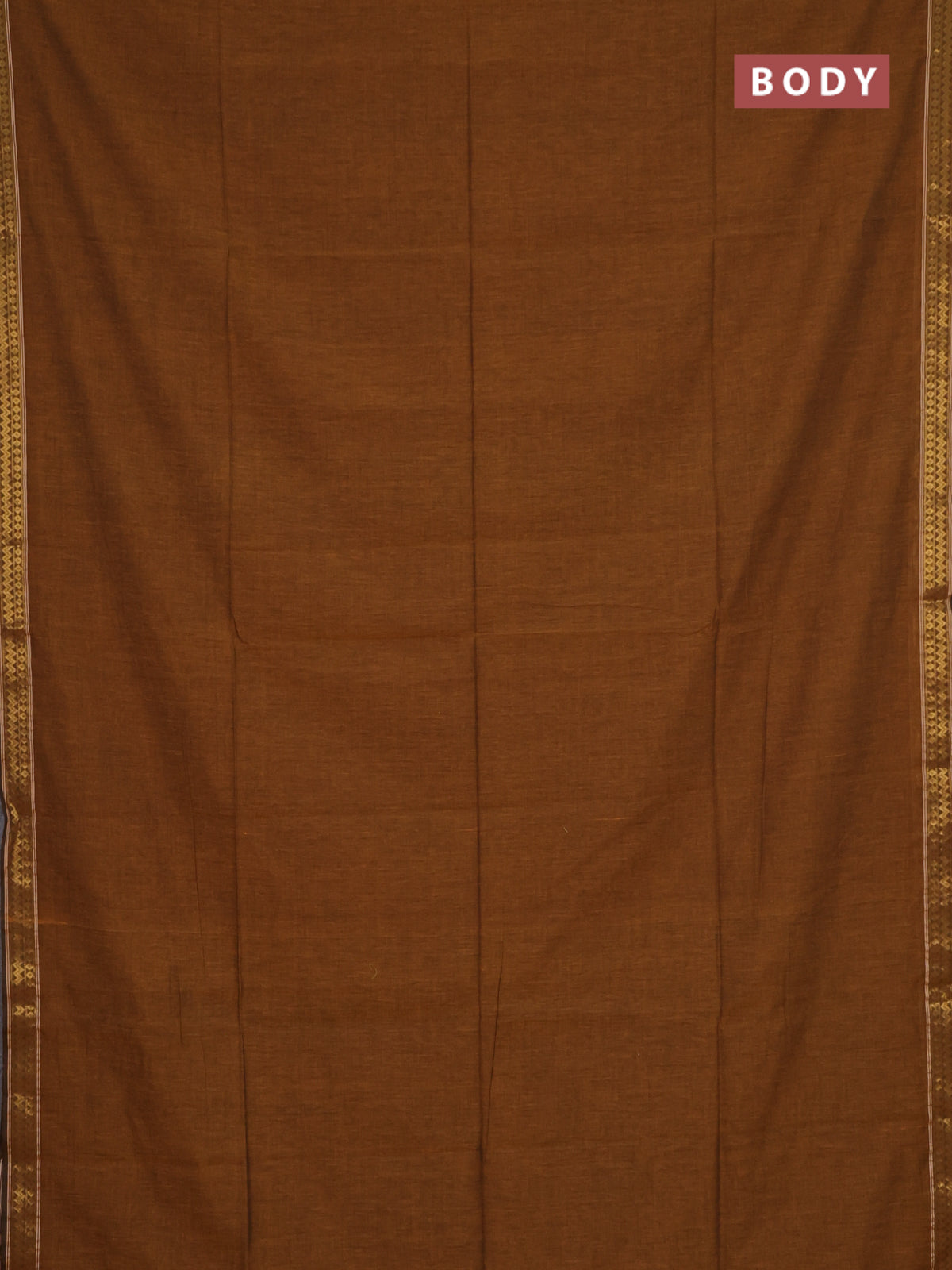 Bengal soft cotton saree dark mustard and green with plain body and zari woven border
