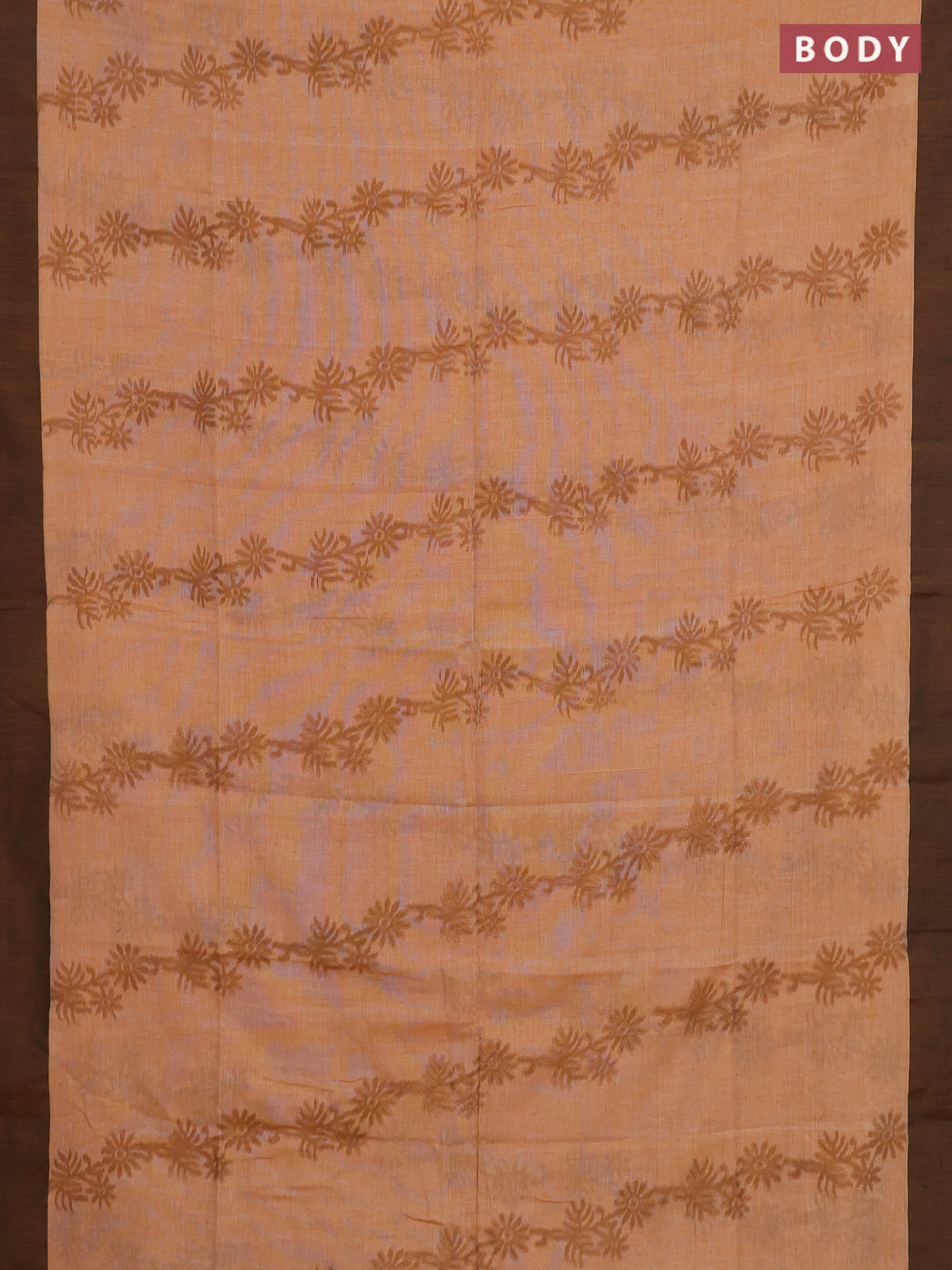 Bengal soft cotton saree dark mustard and grey with allover weaves and simple border