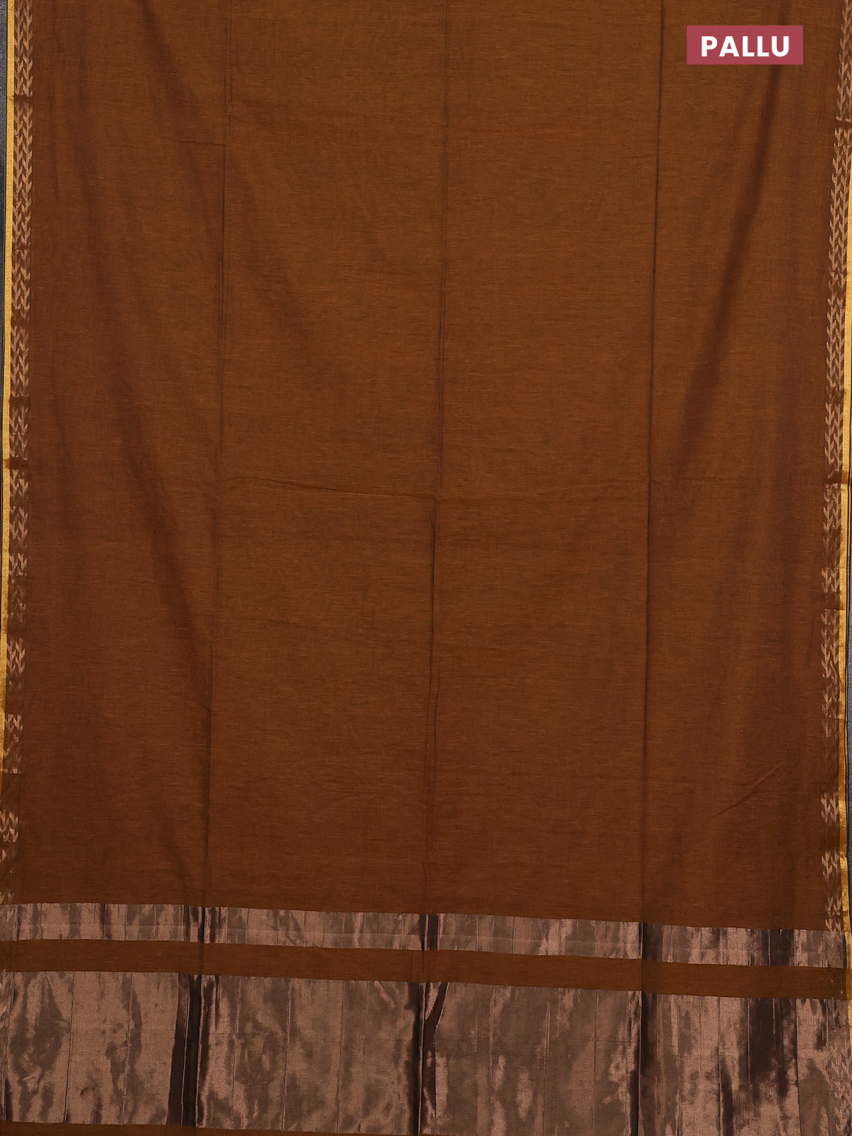 Bengal soft cotton saree dark mustard and violet shade with plain body and zari woven border