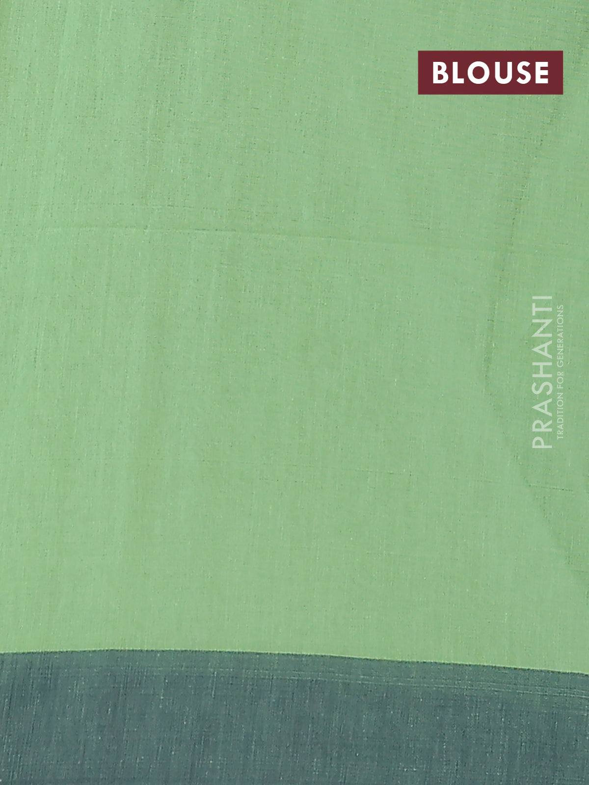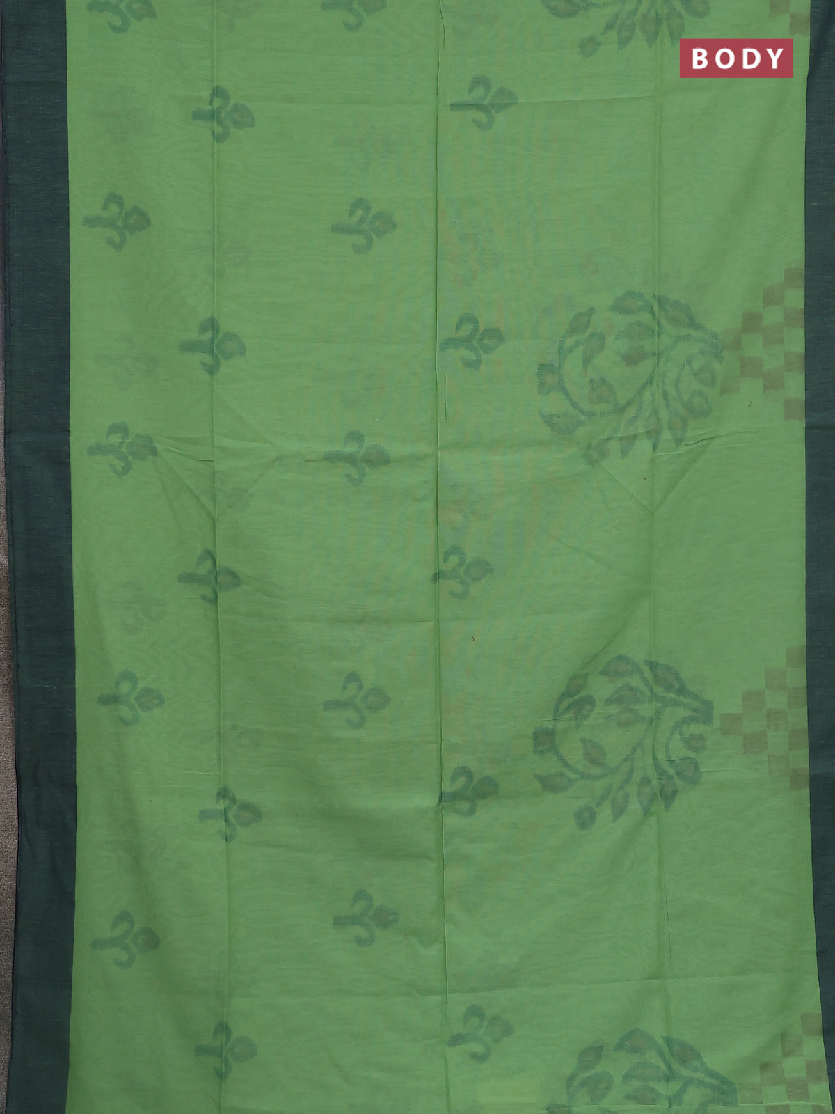 Bengal soft cotton saree green and blue with allover butta weaves and simple border