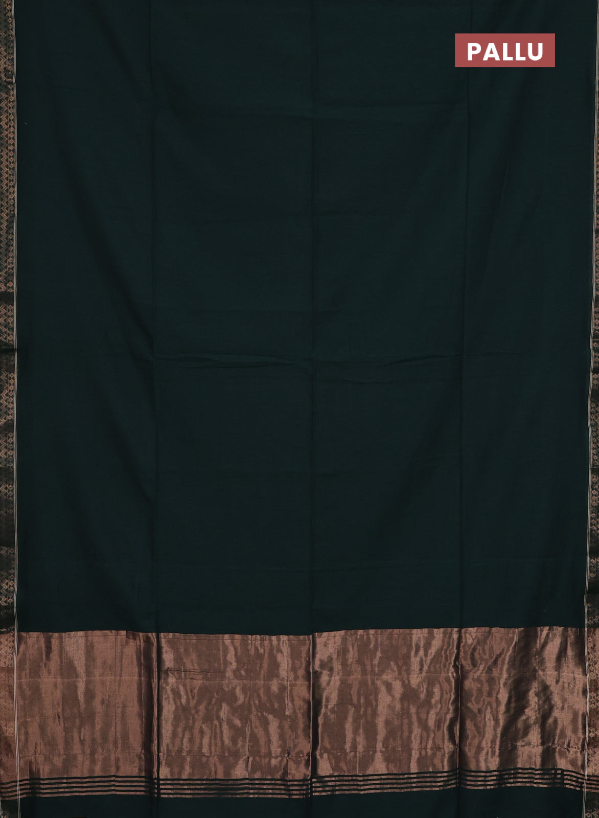 Bengal soft cotton saree green and violet with plain body and zari woven border