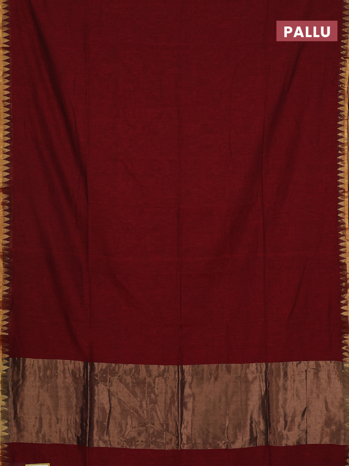 Bengal soft cotton saree maroon and blue with plain body and zari woven border