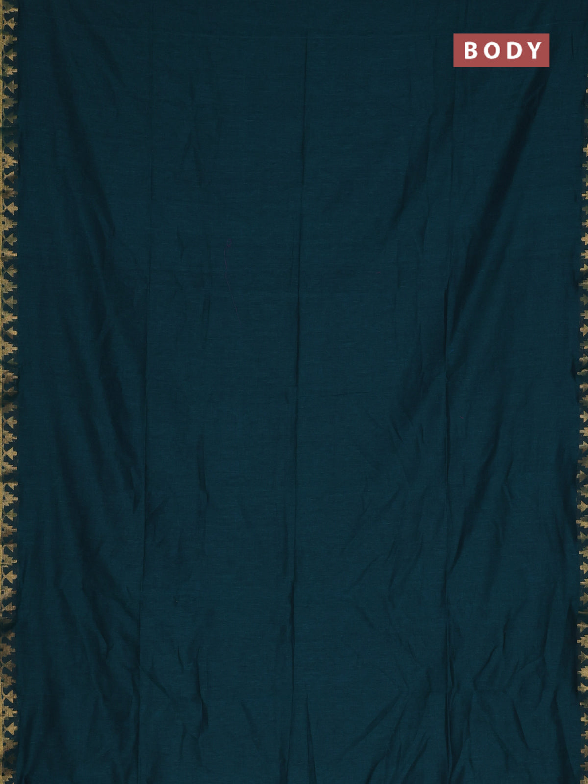 Bengal soft cotton saree peacock green and mustard yellow with plain body and zari woven border
