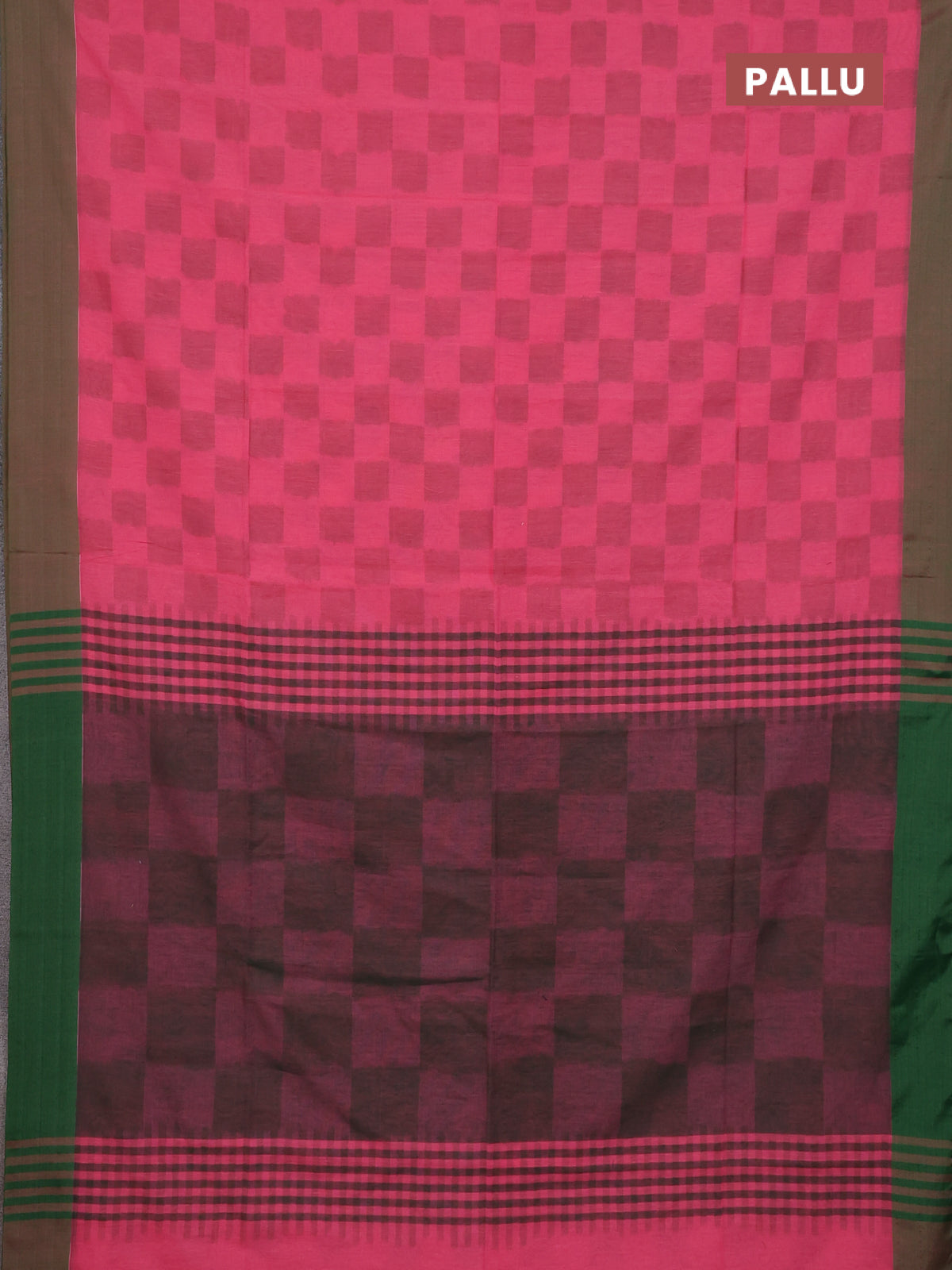 Bengal soft cotton saree pink and green with allover weaves and simple border