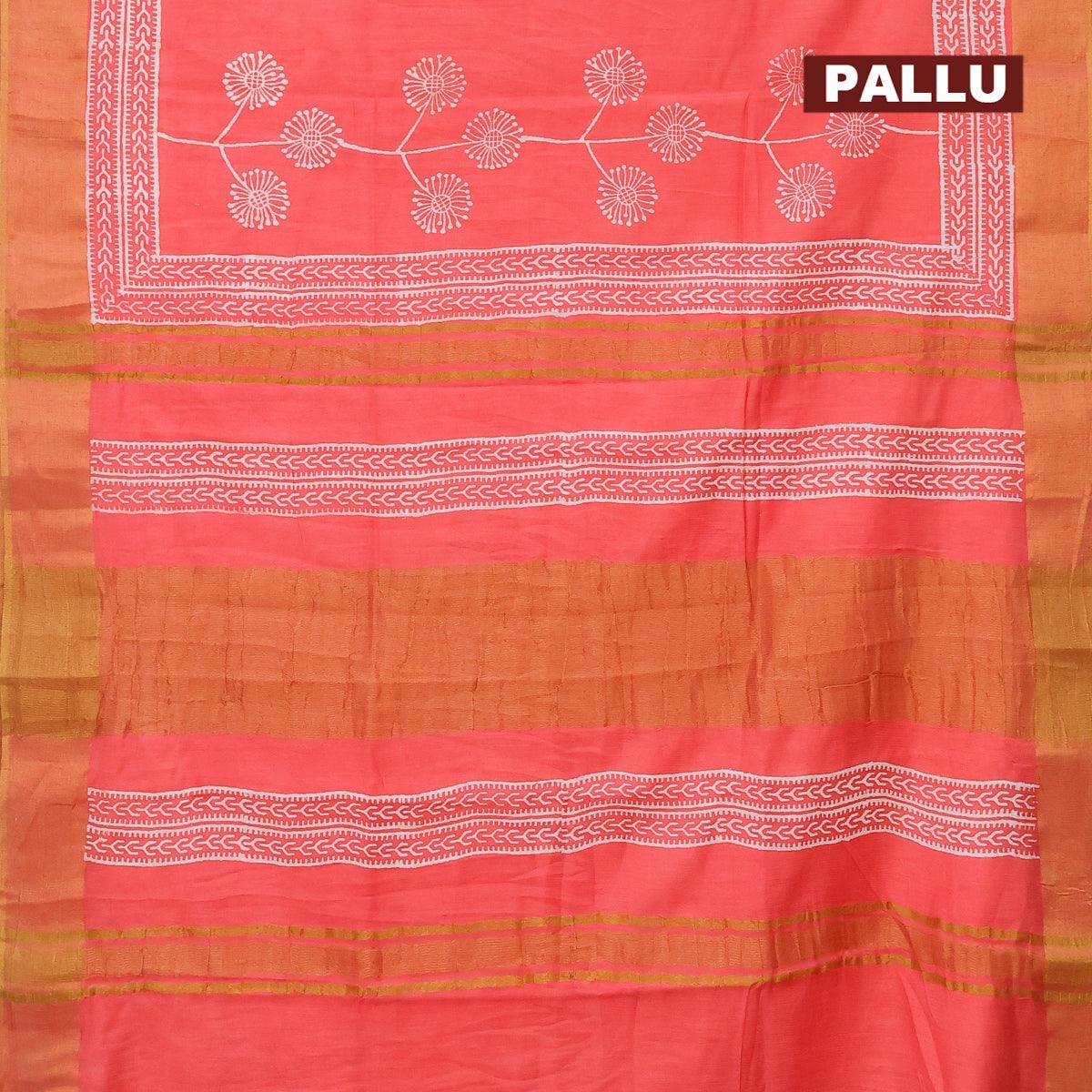 Bhagalpuri saree peach pink shade with butta prints and zari woven border