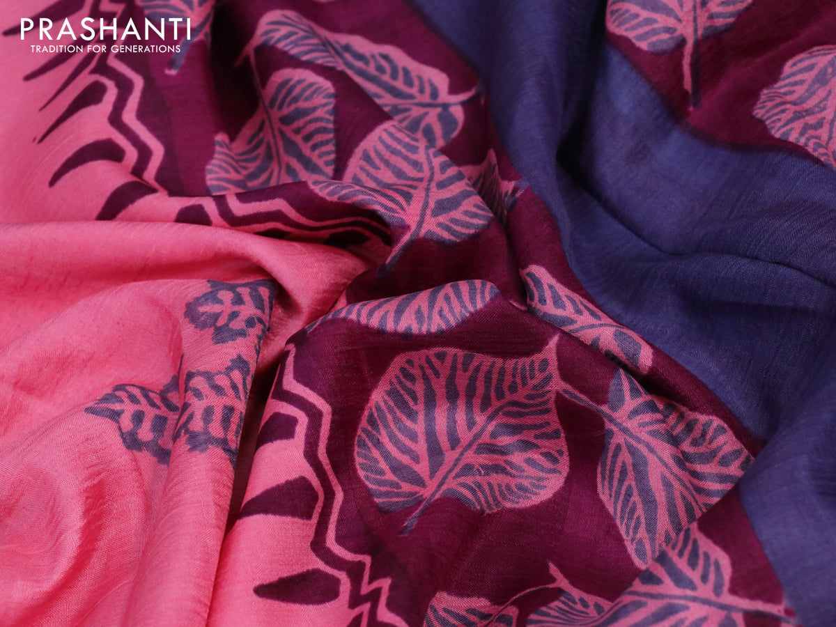 Bishnupuri silk saree pastel pink and deep purple with butta prints and printed border