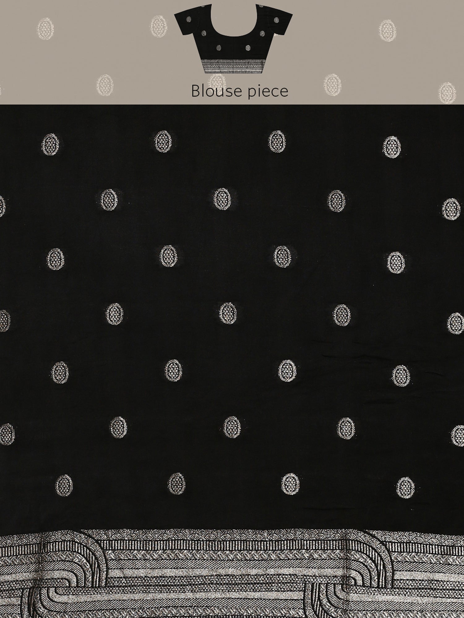 Black Banaras Silk Saree With Silver Zari Motifs & Border