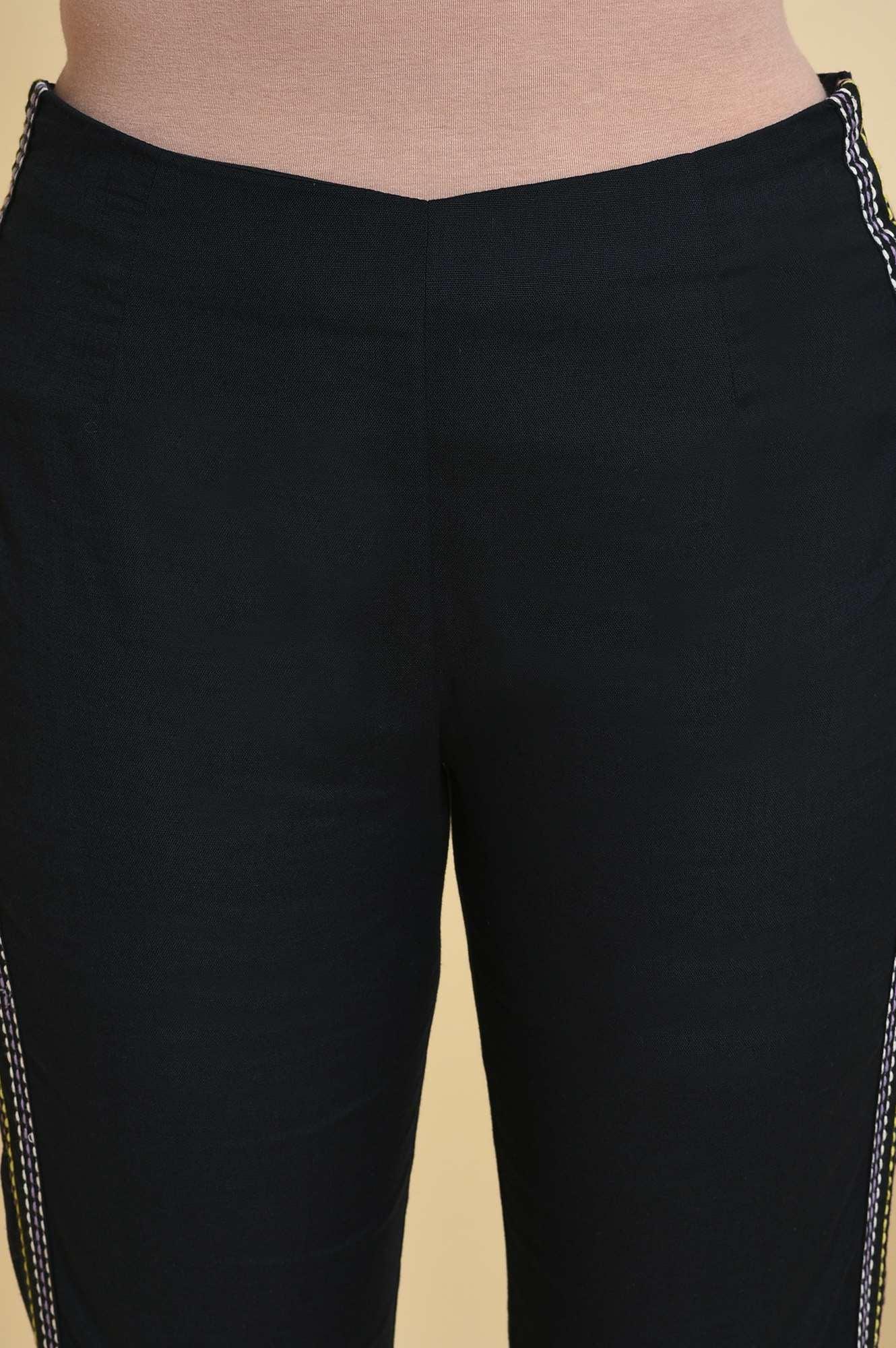 Get A Stylish Contemporary Look With This Black kurta Set. The Set Includes Abstract Print kurta With Tape Tie Up. It Also Includes Black Pants.