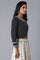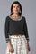 Black polka print dobby crop top with embroidery at neck and in full sleeves.