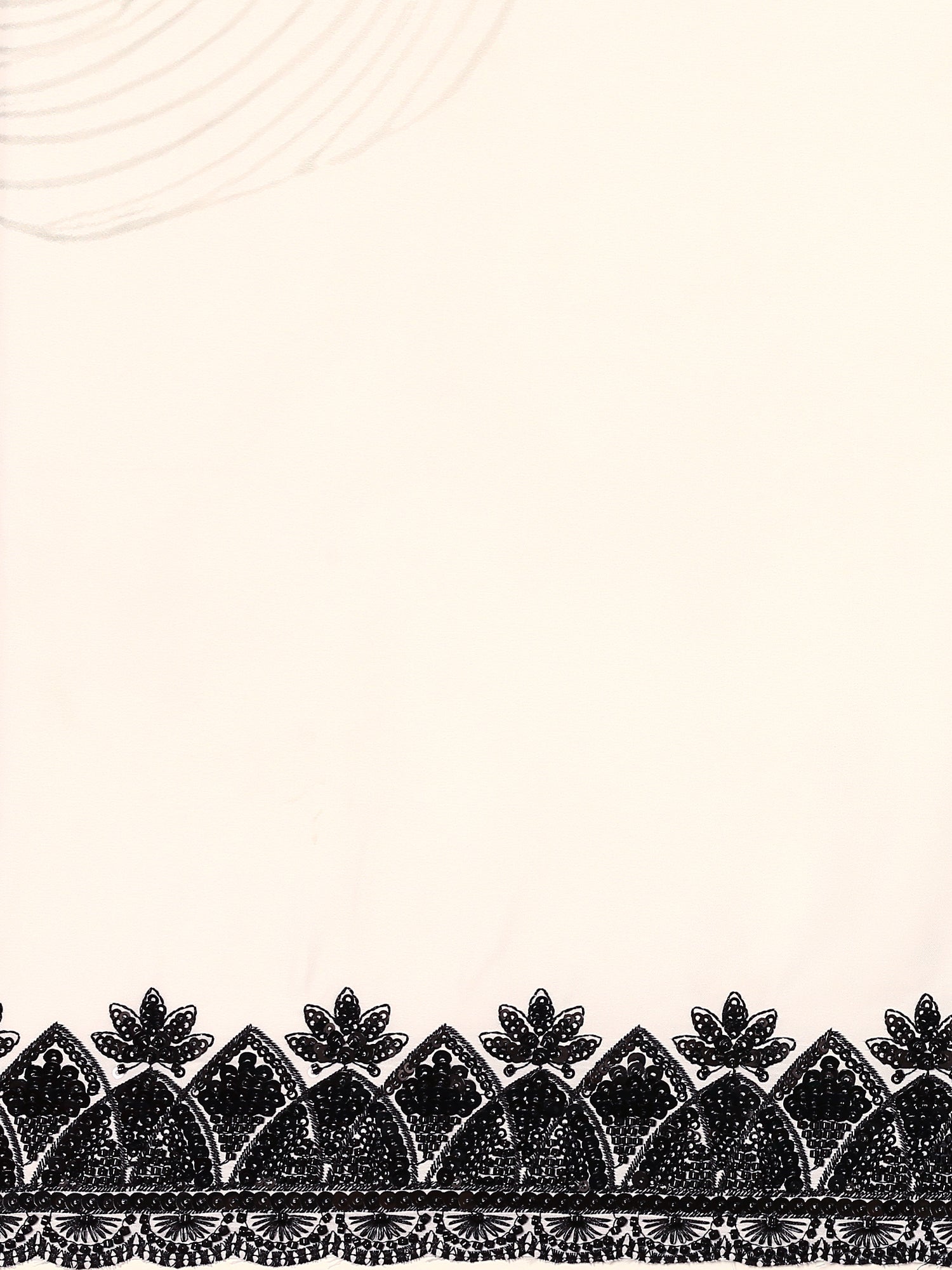 Black & white satin printed saree with hand embroidery & ready made blouse