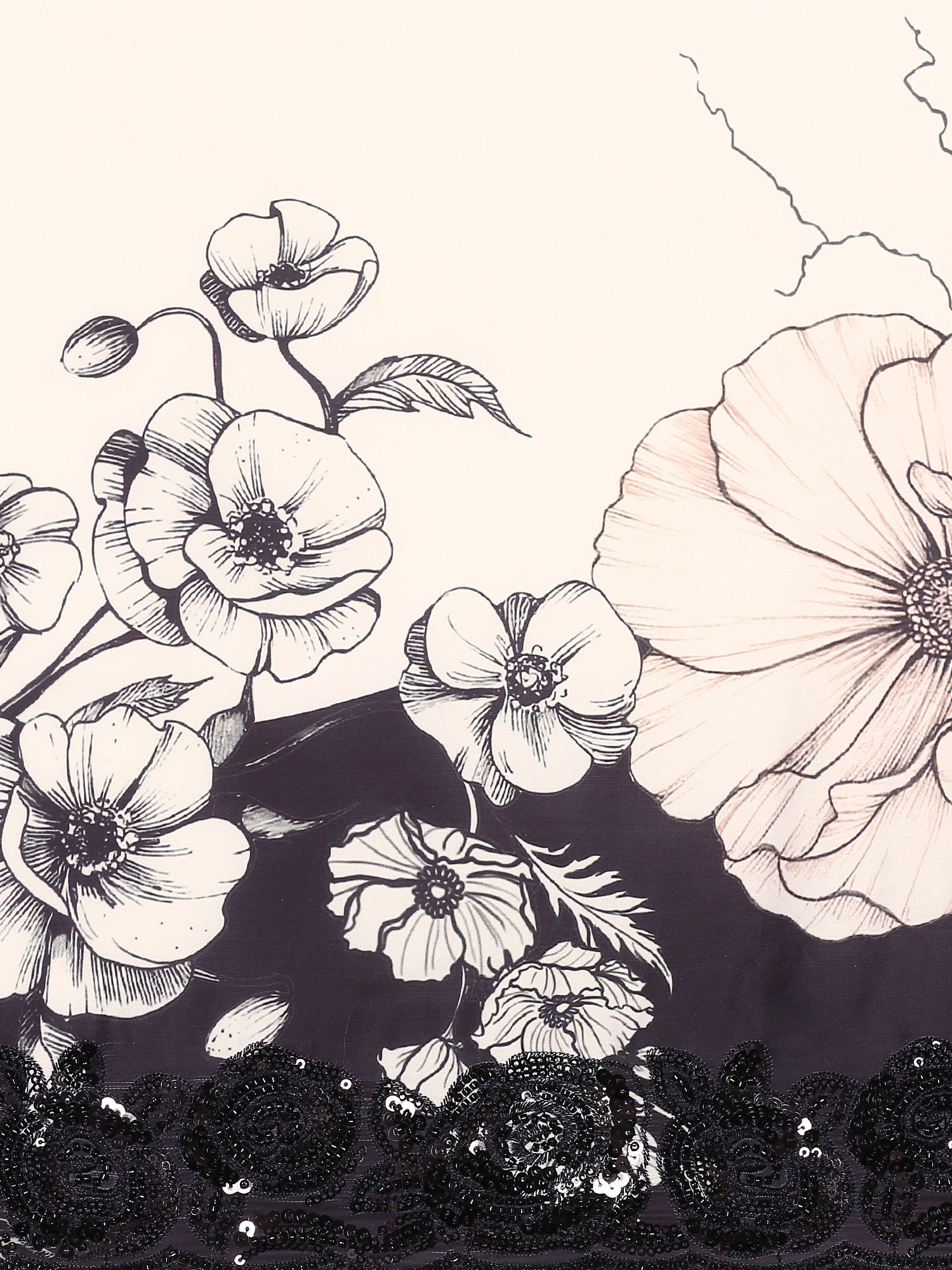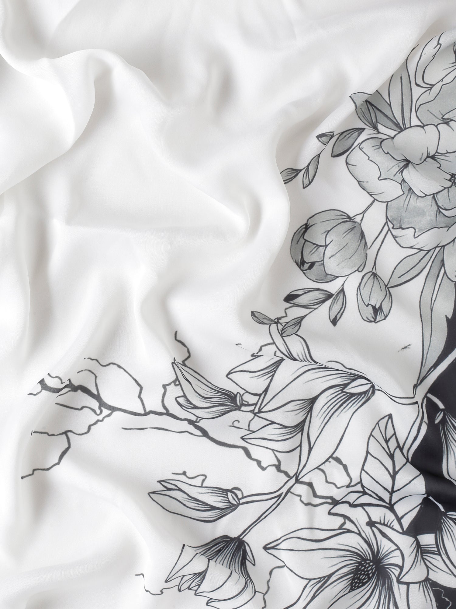 Black & white satin printed saree with hand embroidery & ready made blouse